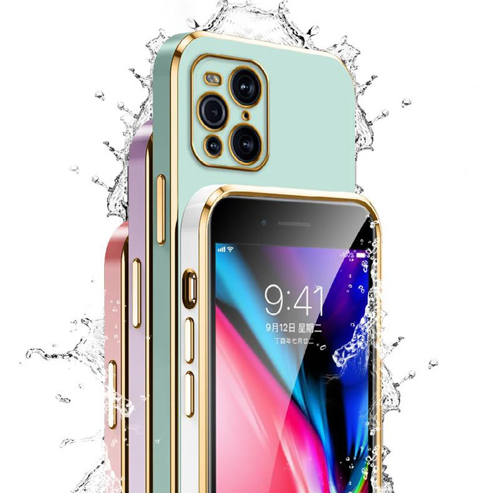 Comprar Para oppo Find X3 funda de lujo chapada cuadrada OPPO Find X3 Pro funda de teléfono X3Pro funda trasera de silicona a prueba de golpes PEDM00 CPH2173