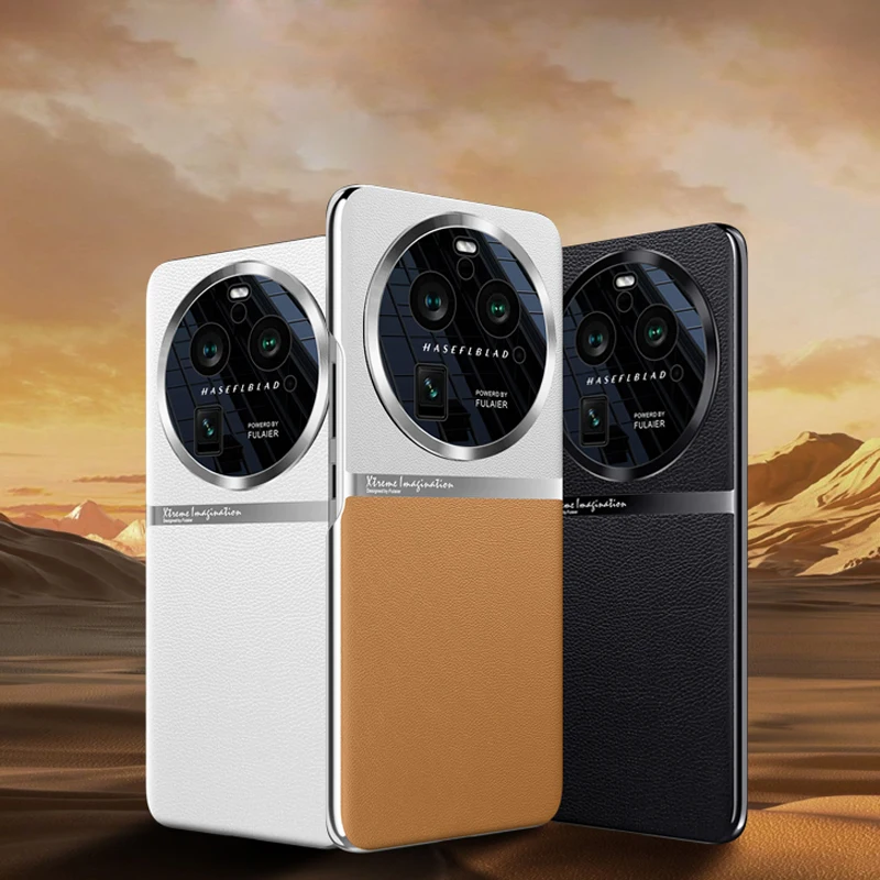 Para OPPO Find X6 Pro funda trasera de cuero PU galvanizada para OPPO Find X6 protección de cámara cubierta de parachoques teléfono Coque