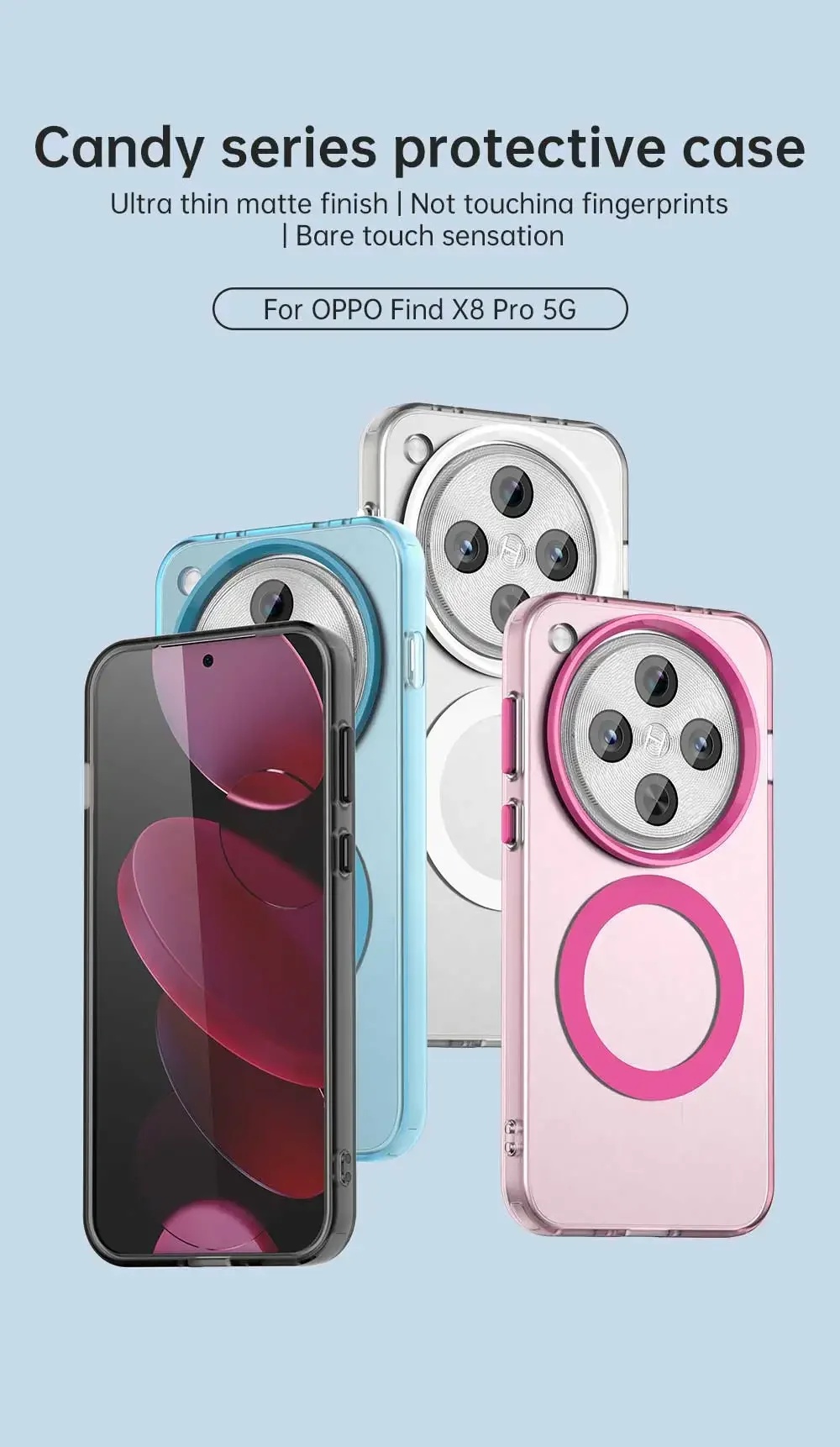 [Material]: PC translúcido mate de alta calidad + TPU suave + imán + PET