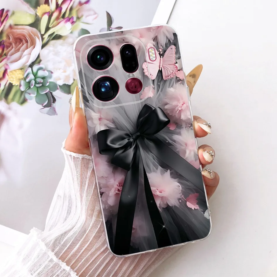 Detalle de productosPara OPPO Find X9 Pro 2025, funda Popular con estampado de lazo y flores, carcasa de teléfono de silicona suave para OPPO Find X9 Pro, Coque