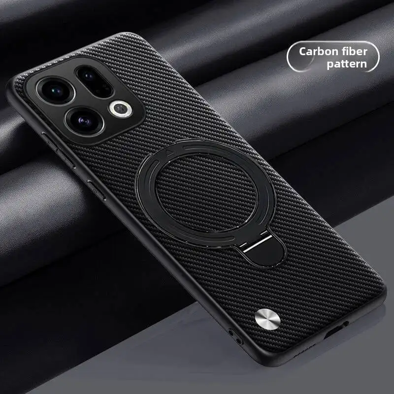 Para OPPO Find X9 Pro funda dura PU de fibra de carbono soporte de anillo cubierta trasera protectora magnética para Find X9 X8 Pro X8S + carcasa de teléfono
