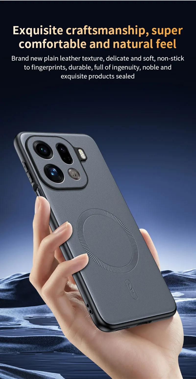 Comprar Para OPPO Find X9 Pro funda protectora de cuero magnética para OPPO Find X9 Pro antihuellas antideslizante PC + TPU