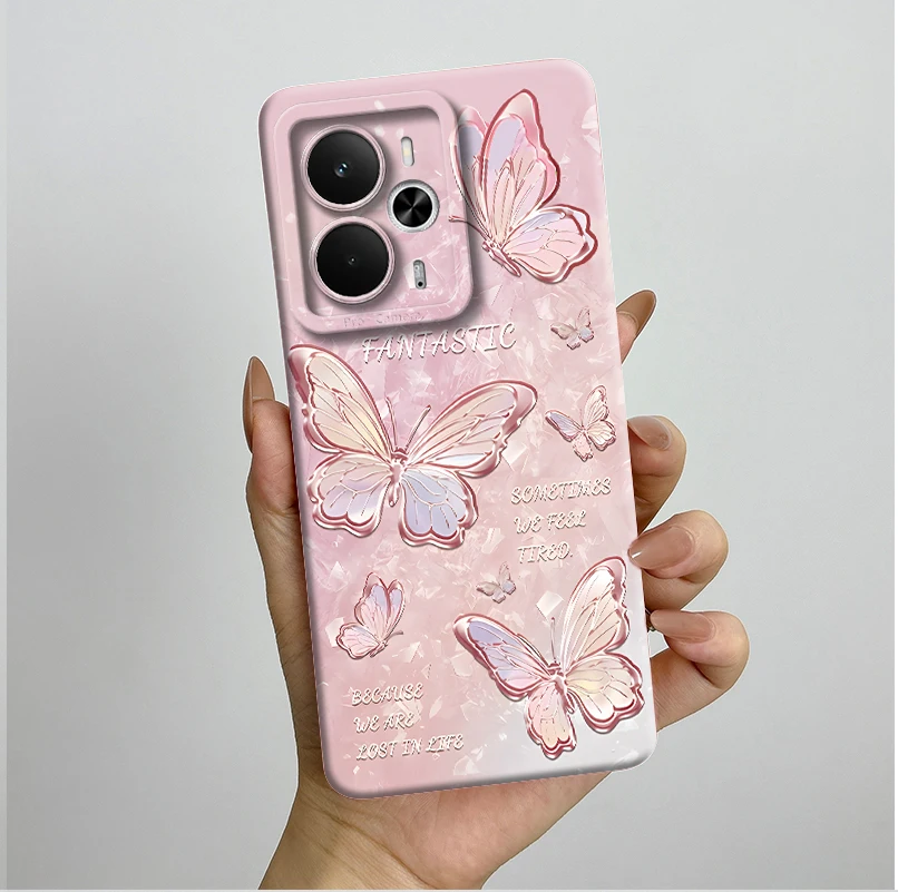 Comprar Para OPPO Realme 14T 5G funda bonita mariposa flor patrón suave delgada funda de silicona a prueba de golpes para OPPO Realme 14 5G funda de teléfono