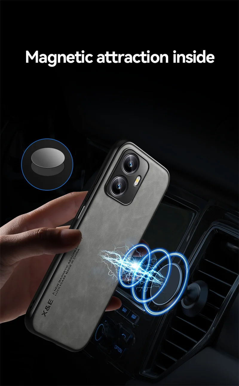 Comprar Para OPPO Realme C55 funda marco suave a prueba de golpes Coque RealmeC55 OPPO C55 Funda de cuero con soporte magnético para coche