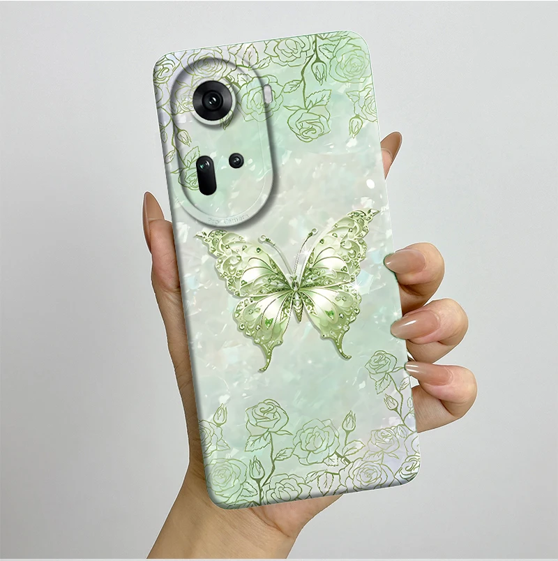 Para OPPO Reno 11 5G funda OPPO Reno11 5G CPH2599 funda de teléfono Linda mariposa flor silicona lente de cámara protección suave contraportada