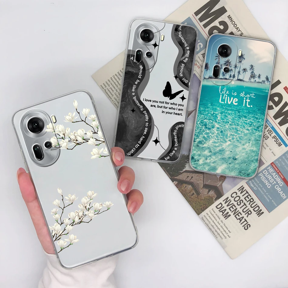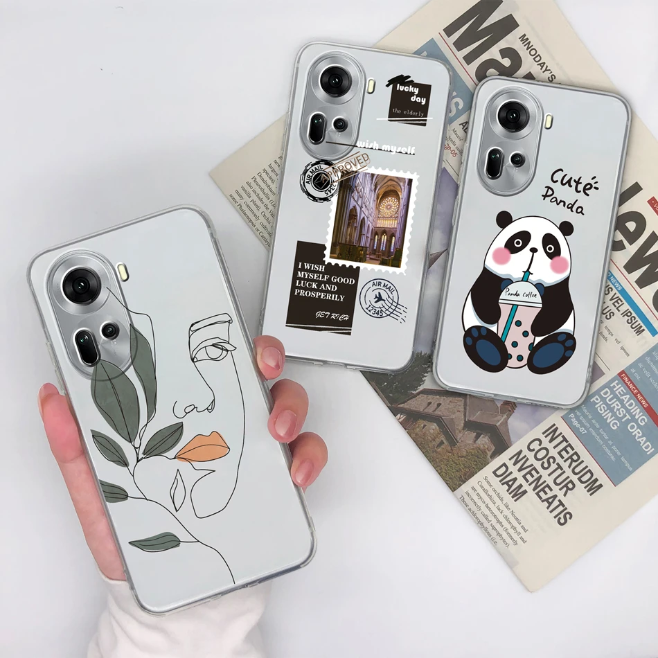 Comprar Para OPPO Reno 11 Pro funda Simple creativa suave TPU transparente silicona anticaída contraportada para OPPO Reno11 5G carcasa de teléfono Capa