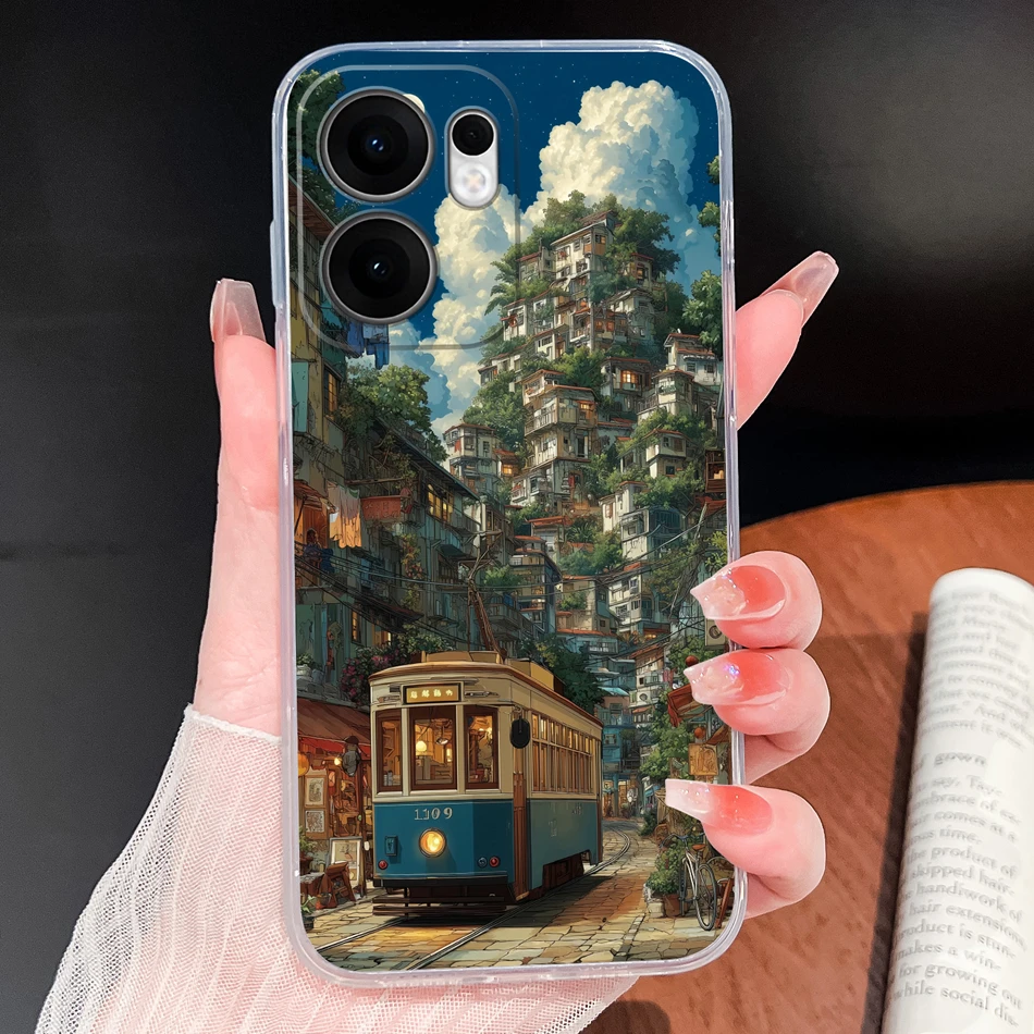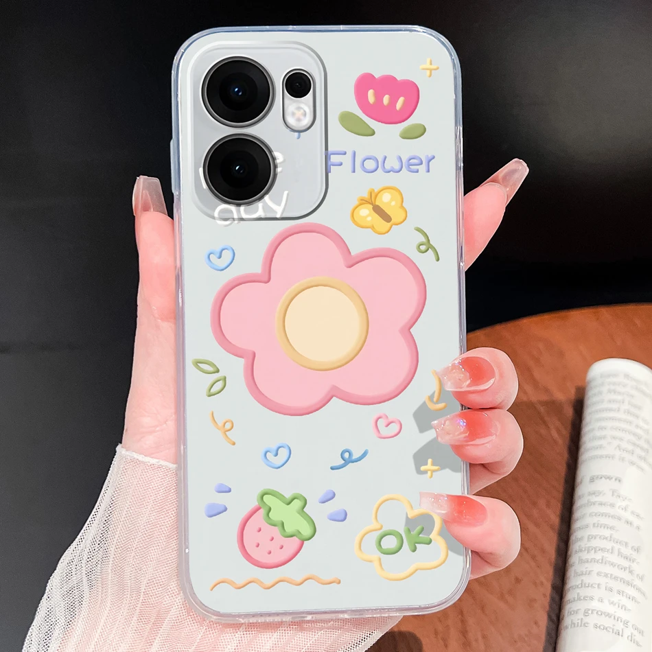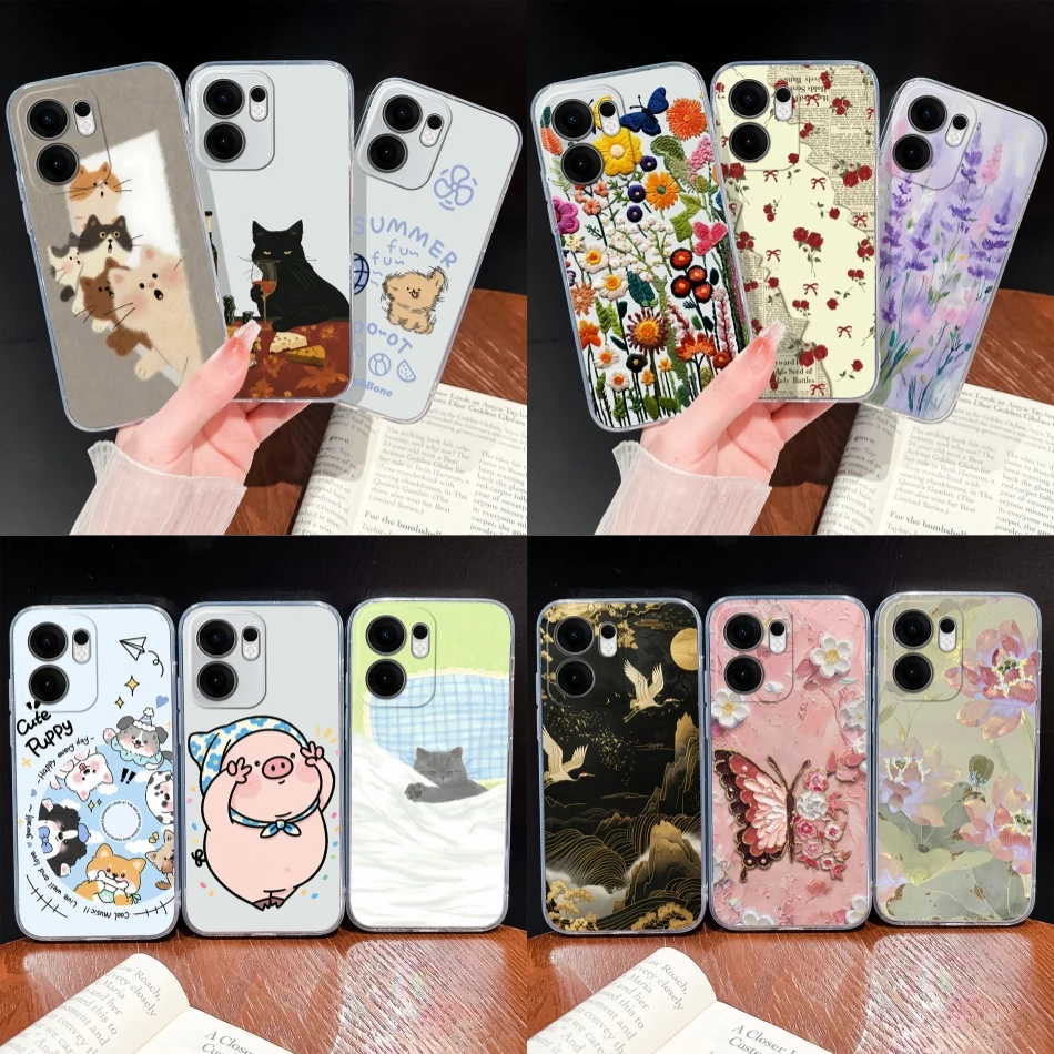 Comprar Para Oppo Reno 13 Pro 13F funda bonita diseño transparente contraportada para Oppo Reno13 suave delgada TPU silicona anticaída carcasa de teléfono
