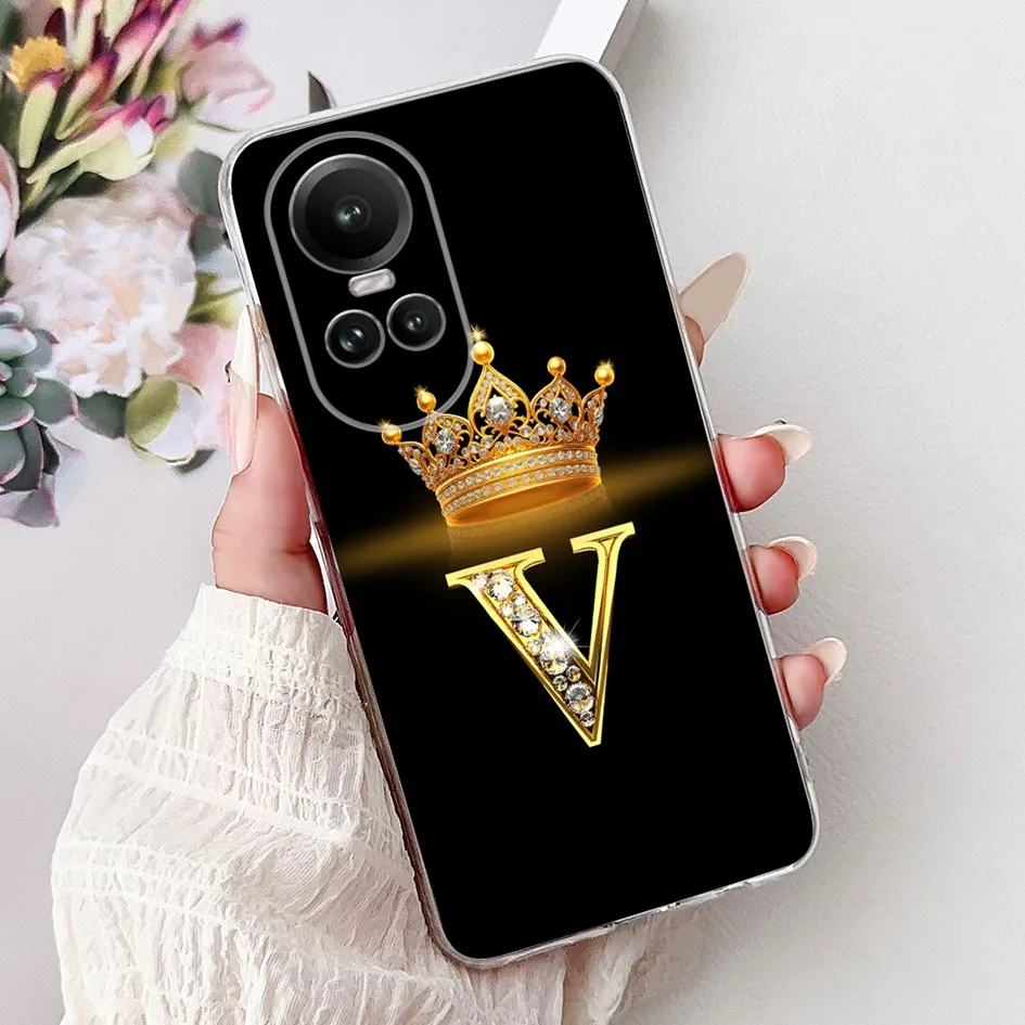 Comprar Para Oppo Reno10 Pro funda CPH2525 cubierta de lujo corona letras fundas de teléfono de silicona suave para OPPO Reno 10 CPH2531 Reno10 5G carcasa