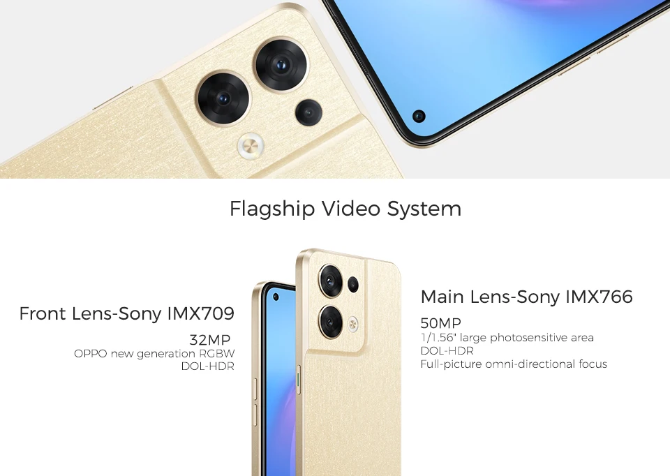 En la caja ---OPPO Reno 8*1; Adaptador de corriente AU * 1; Cable tipo C * 1; Guía de Inicio Rápido * 1; Tarjeta de Garantía * 1; Aguja de extracción de tarjeta SIM * 1; estuche * 1
