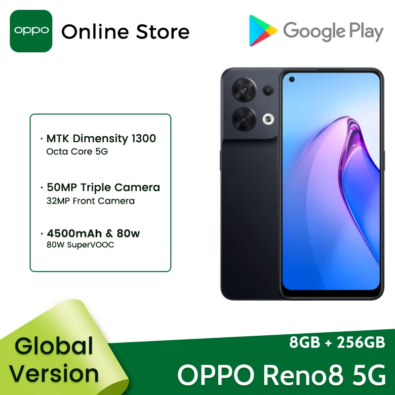 Comprar OPPO-Smartphone Reno 8 5G, versión Global, 8GB, 256GB, MTK Dimensity 1300, 6,4 ", 90Hz, Pantalla AMOLED, 50MP, 80W, SUPERVOOC