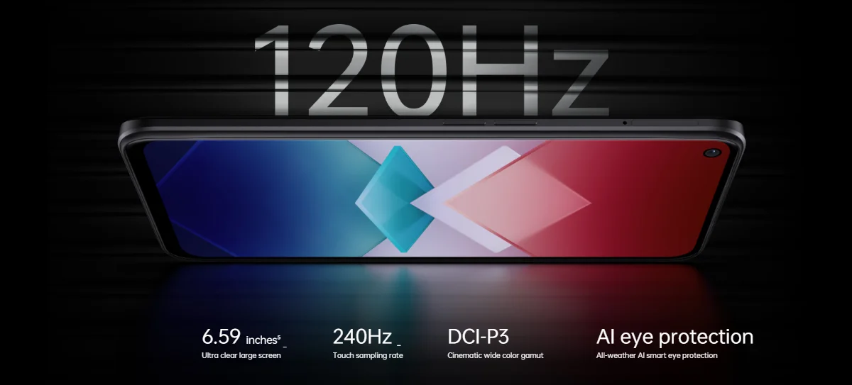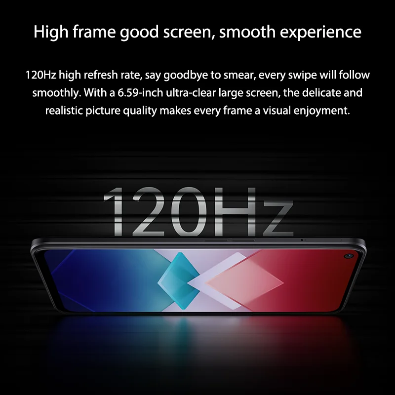 Alta frecuencia de actualización de 120Hz, Diga adiós a las manchas, cada deslizamiento seguirá sin problemas. Con una pantalla grande ultra clara de 6,59 pulgadas, la calidad de imagen delicada y realista hace que cada marco sea un disfrute visual.