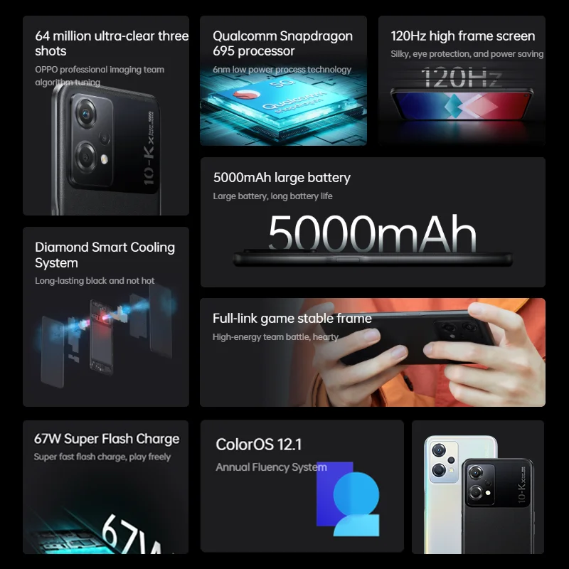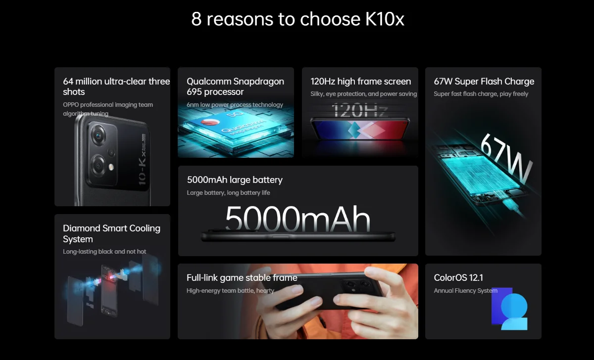 Comprar OPPO-teléfono inteligente K10x 5G, Smartphone con Snapdragon 695, 8GB, 128GB, 120Hz, pantalla de 64MP, 5000mAh, 67W, carga rápida, K 10 x