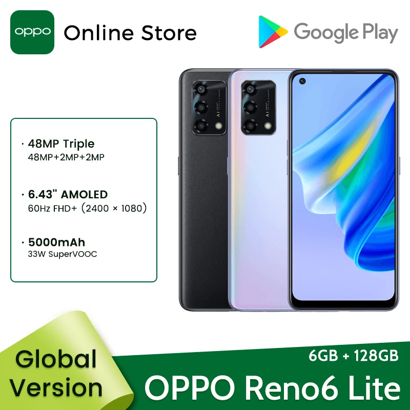 Comprar OPPO-teléfono inteligente Reno6 Lite versión Global, Smartphone con Snapdragon 662, 6GB, 128GB, 60Hz, Pantalla AMOLED, cámara de 48MP, batería de 5000mAh, Reno 6