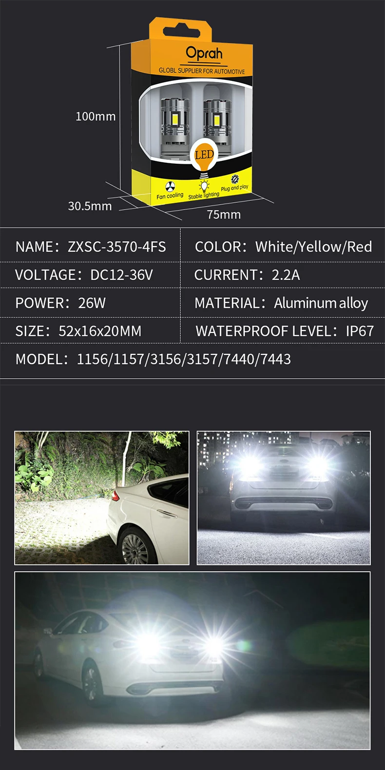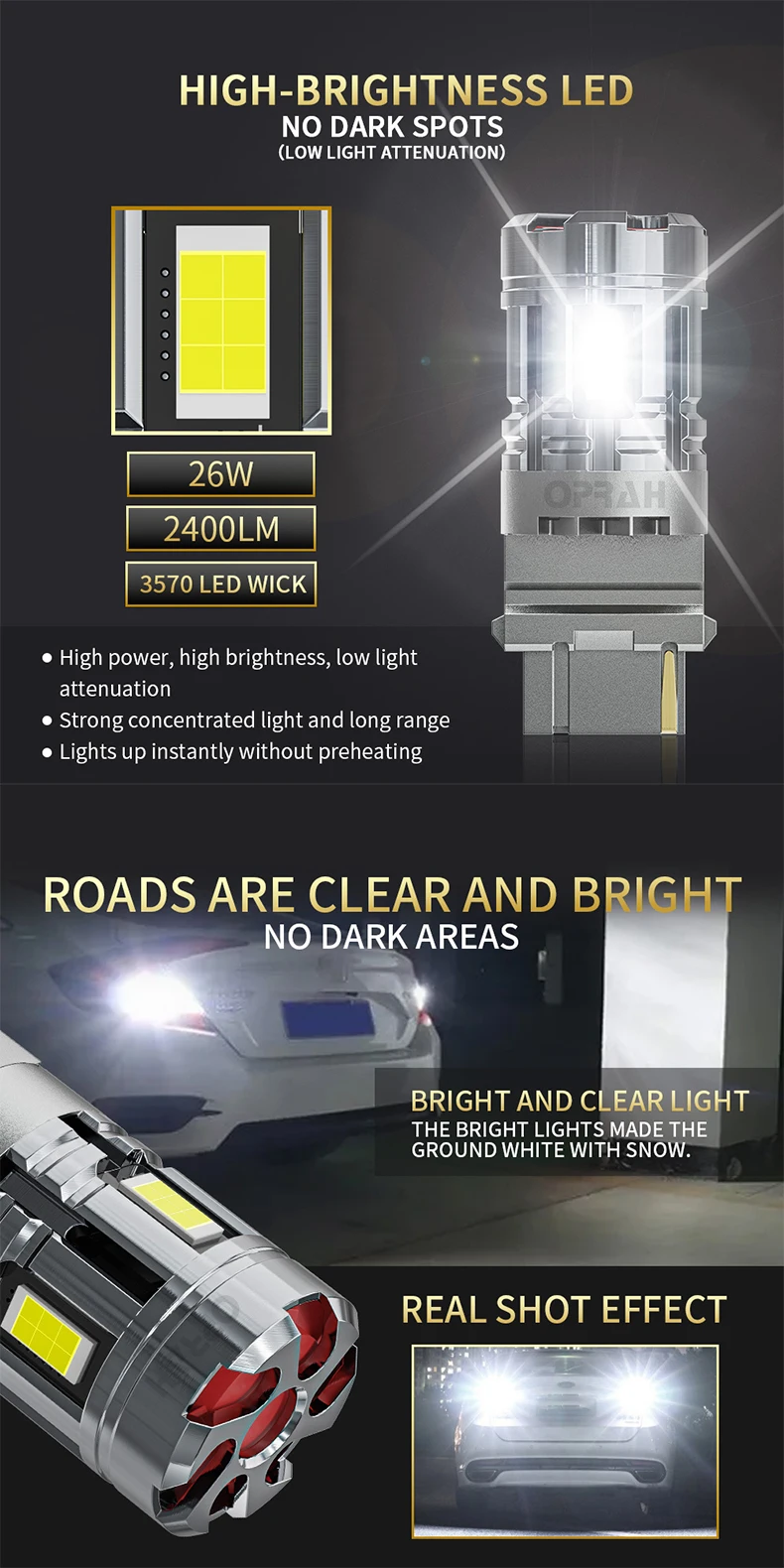 Comprar Oprah LED 1156 P21W BA15S PY21W BAU15S 1157 BAY15D P21/5W 7440 W21W 7443 3157 luz de coche Canbus lámpara de señal de marcha atrás de respaldo 12V