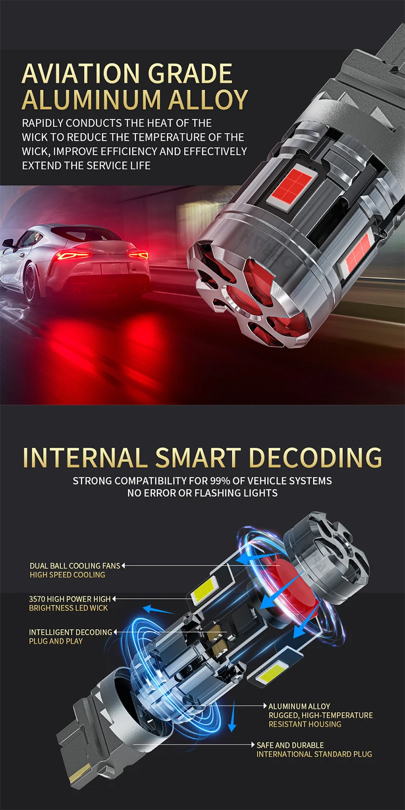 1) Las nuevas bombillas de luz de señal cuentan con algo llamado sistema inteligente de control de temperatura, que combina un potente sistema de refrigeración con un ventilador de refrigeración, garantiza una vida útil más larga.
