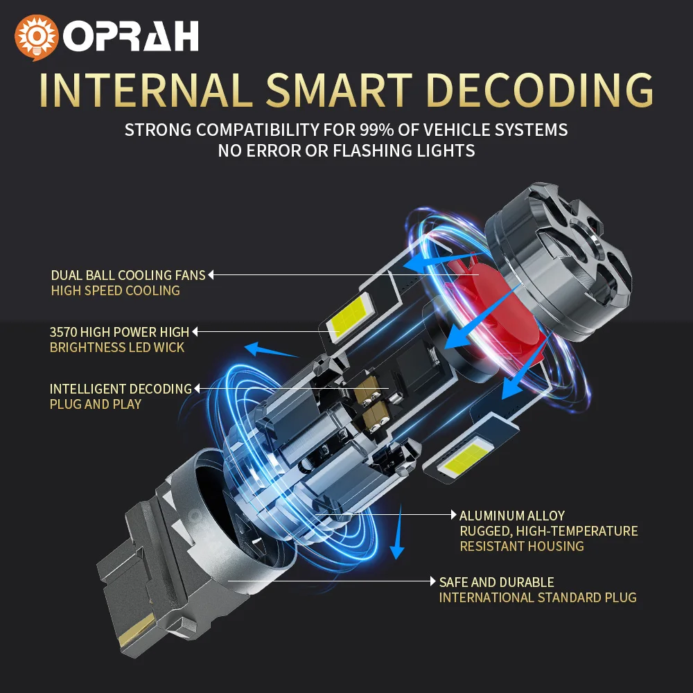 Comprar Oprah LED 1156 P21W BA15S PY21W BAU15S 1157 BAY15D P21/5W 7440 W21W 7443 3157 luz de coche Canbus lámpara de señal de marcha atrás de respaldo 12V