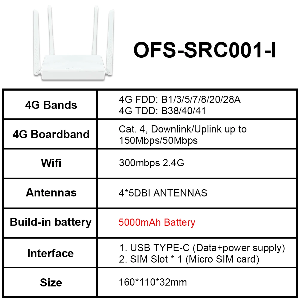 Comprar OPTFOCUS 300mbps 4G LTE enrutador módem USB typeC 5000mah batería 4G WIFI tarjeta SIM punto de acceso móvil 4G CPE wi-fi con 4 antenas