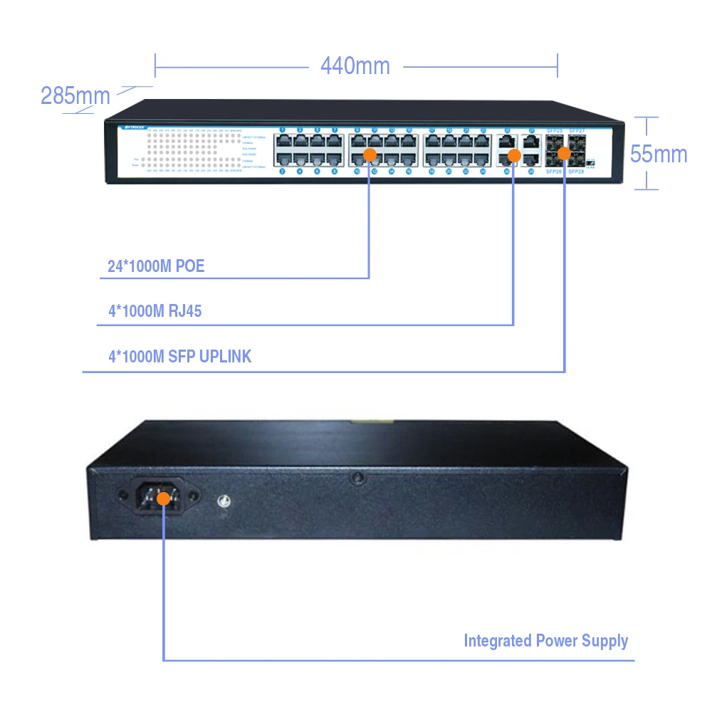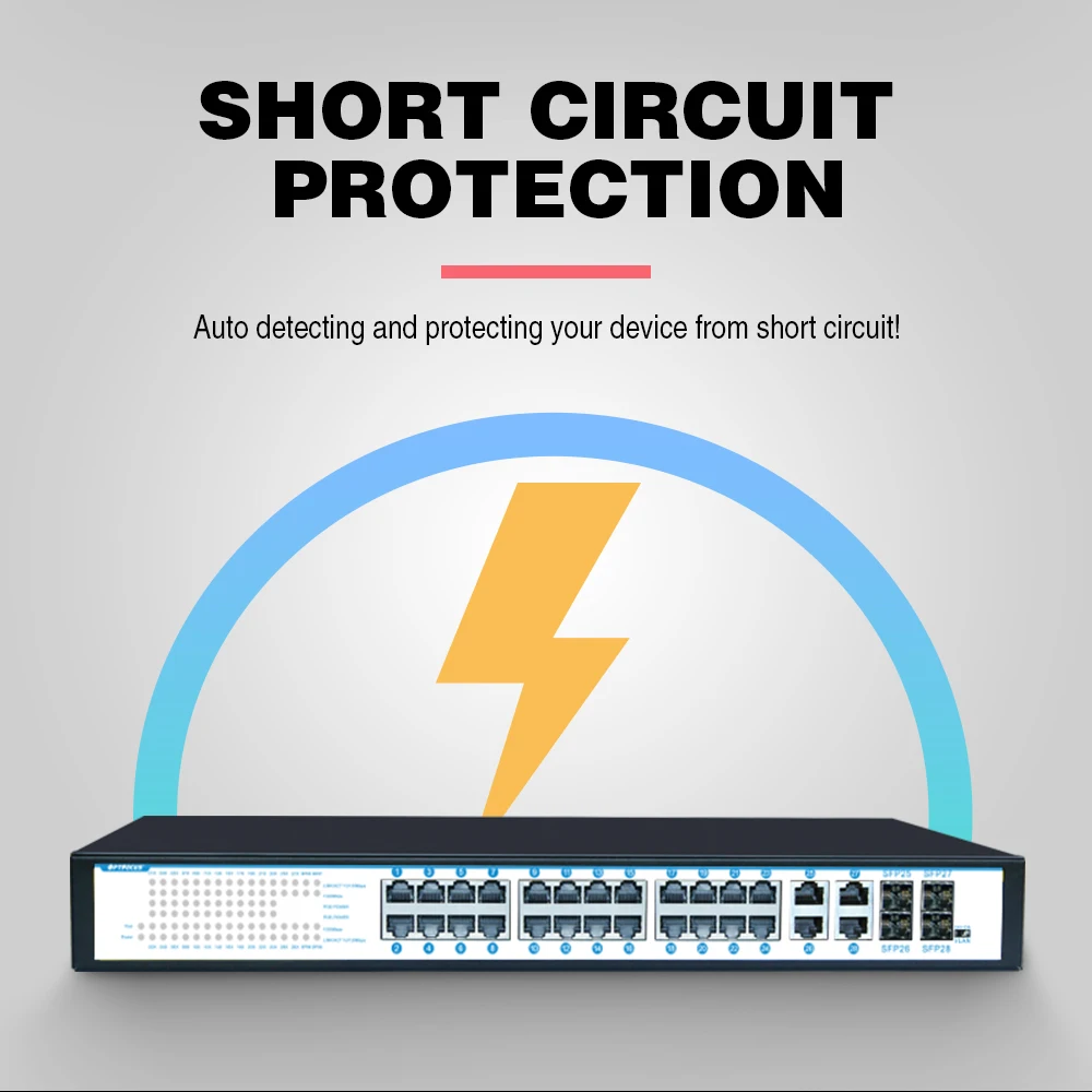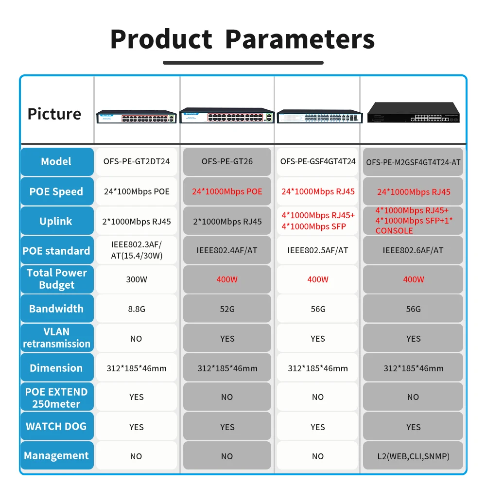 Comprar OPTFOCUS-conmutador inteligente de fibra óptica de 24 puertos, conmutador POE de 1000mbps para cámaras IP, 400W, 48V, Gigabit, SFP, rj45