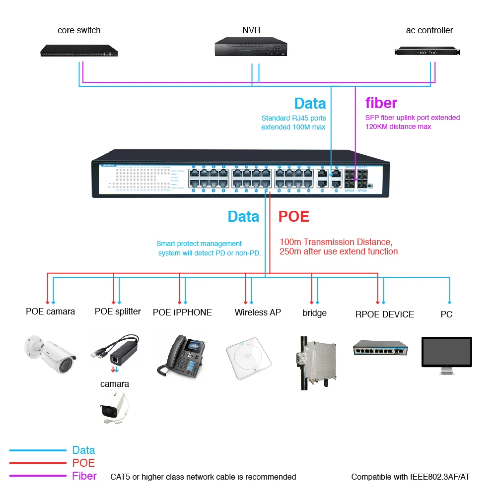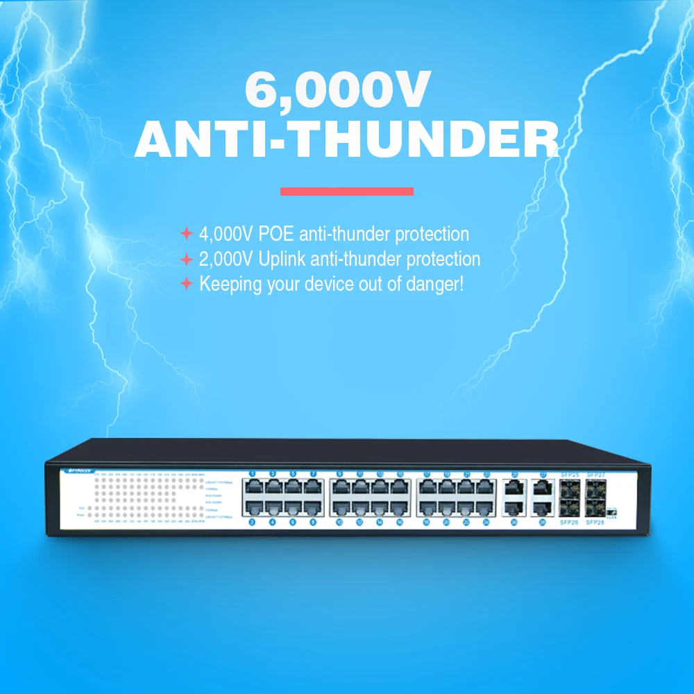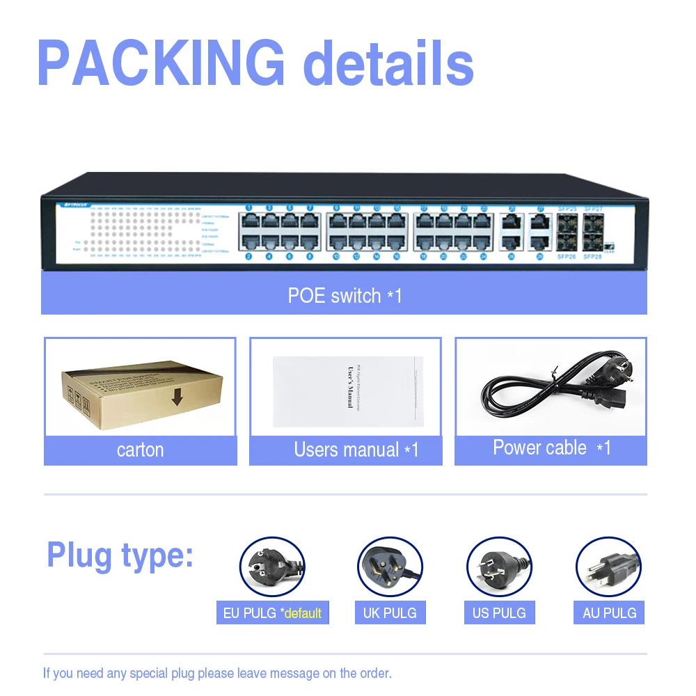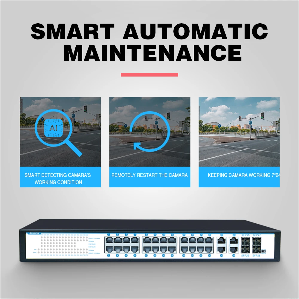 Comprar OPTFOCUS-conmutador inteligente de fibra óptica de 24 puertos, conmutador POE de 1000mbps para cámaras IP, 400W, 48V, Gigabit, SFP, rj45