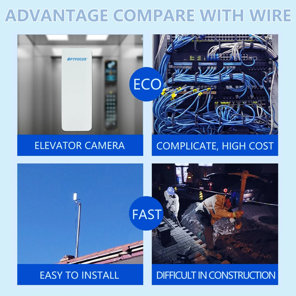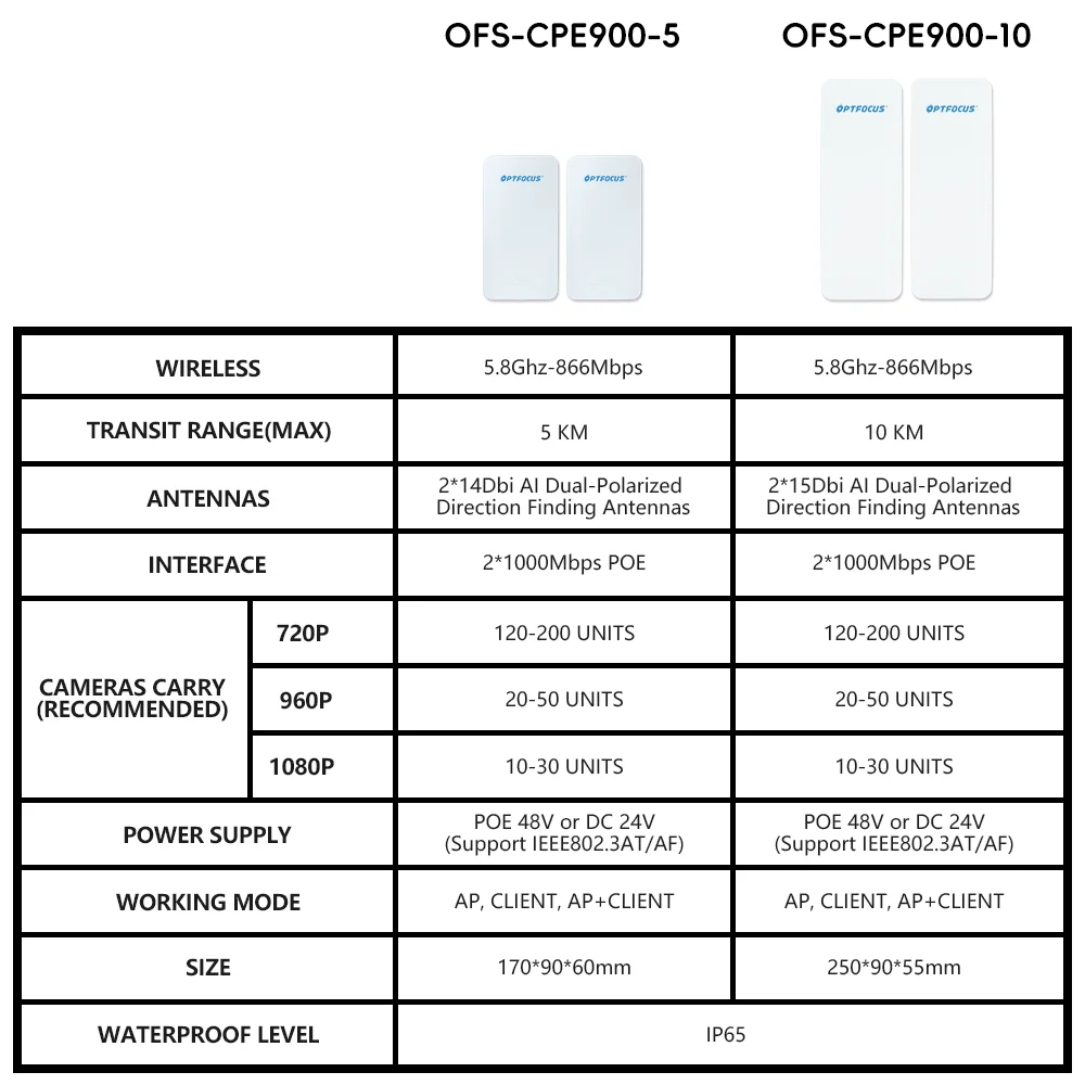 Comprar OPTFOCUS puente inalámbrico para exteriores 1 par 900Mbps 10KM 14Dbi punto a punto IP65 CPE 2,4G 5Ghz CPE WiFi señal PTP de largo alcance