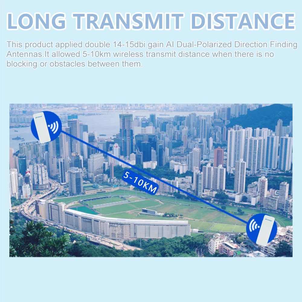 -Transmisión de Súper Larga Distancia: tiene 14-15dbi ultra boost de señal. Y podría alcanzar 5-10km de distancia.