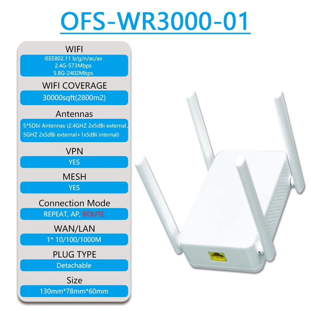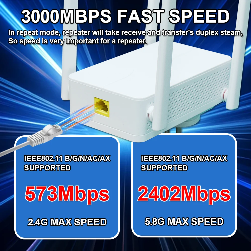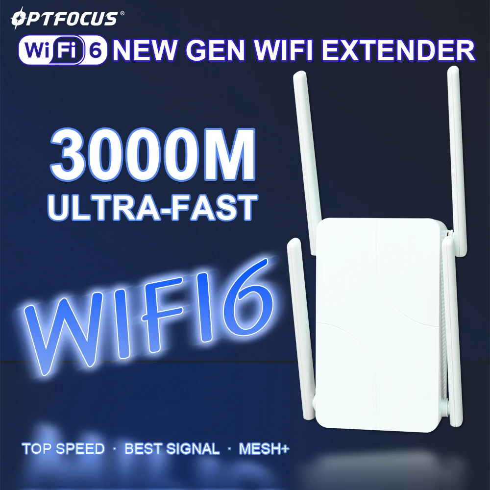 Comprar OPTFOCUS-Repetidor extensor WIFI6 de 3000Mbps, 4 antenas, Repetidor de malla, Amplificador de señal, enrutador Wi-fi 5G6G