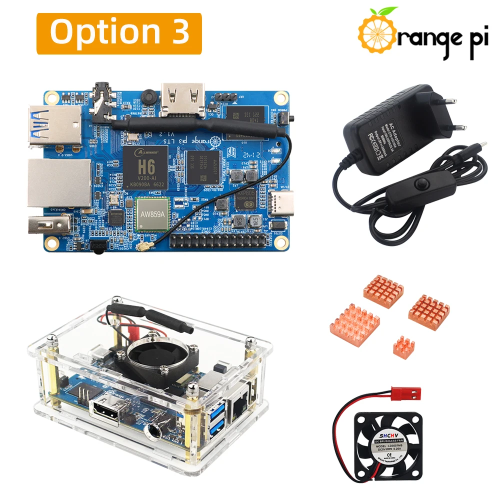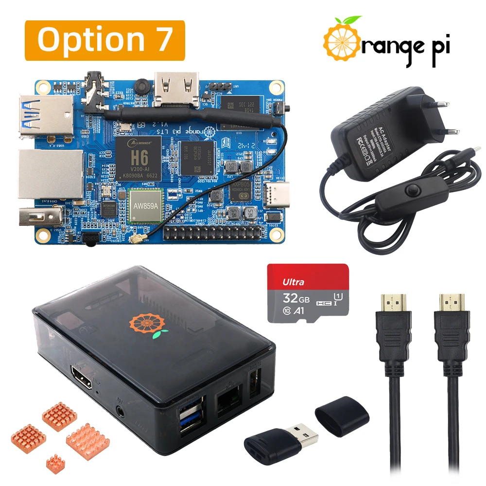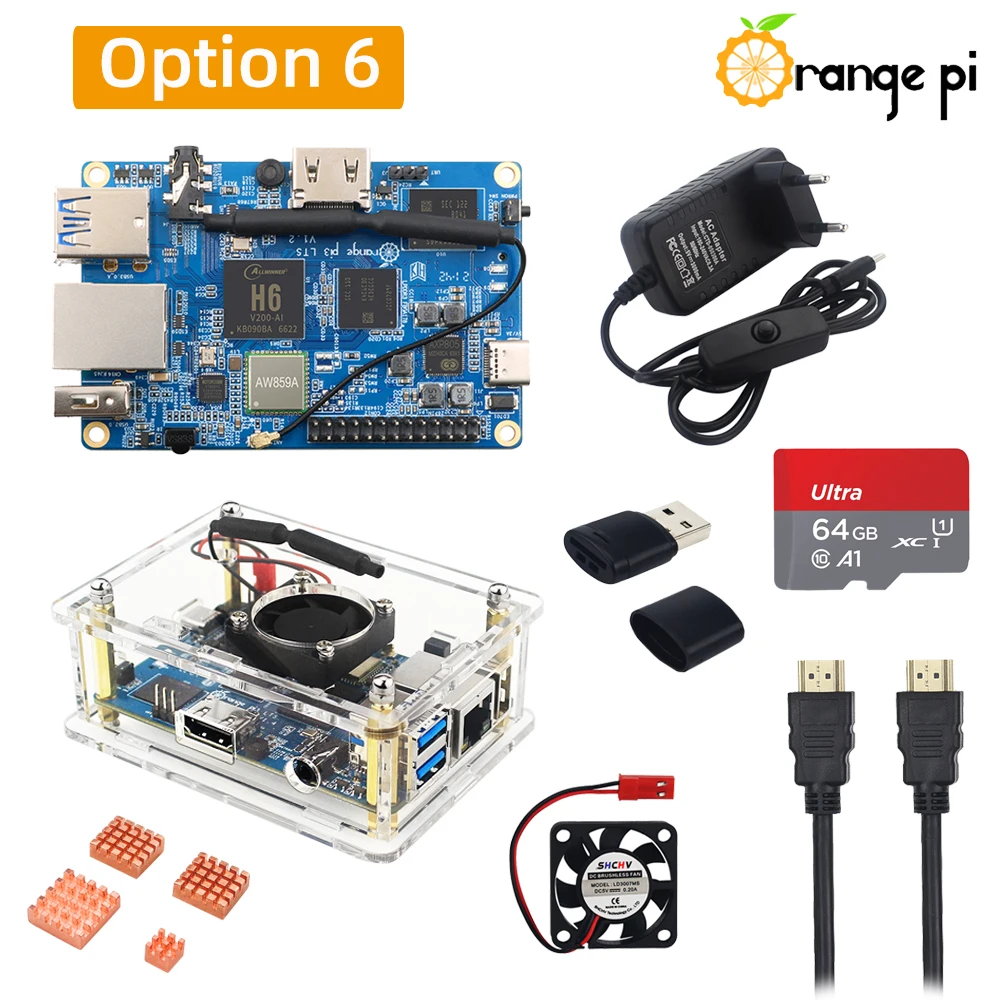 Orange Pi 3 LTS H6 64Bit 8GB EMMC 2G RAM WiFi BT 5.0 Optional Case Power Heatsink Fan HDMI-compatible Cable TF Card OPI 3LTS