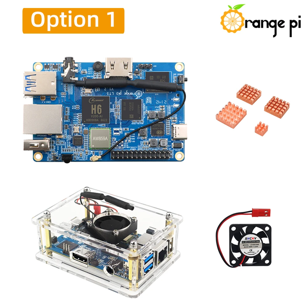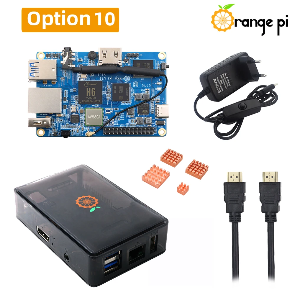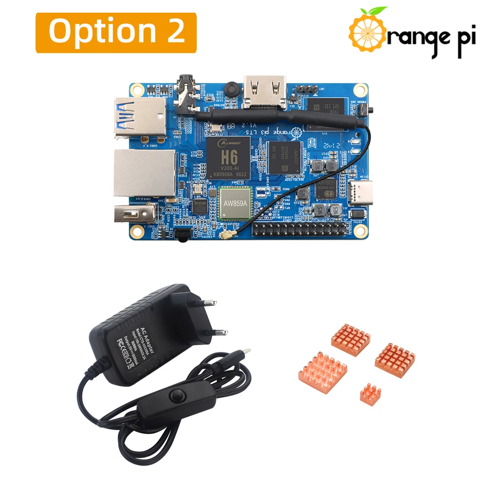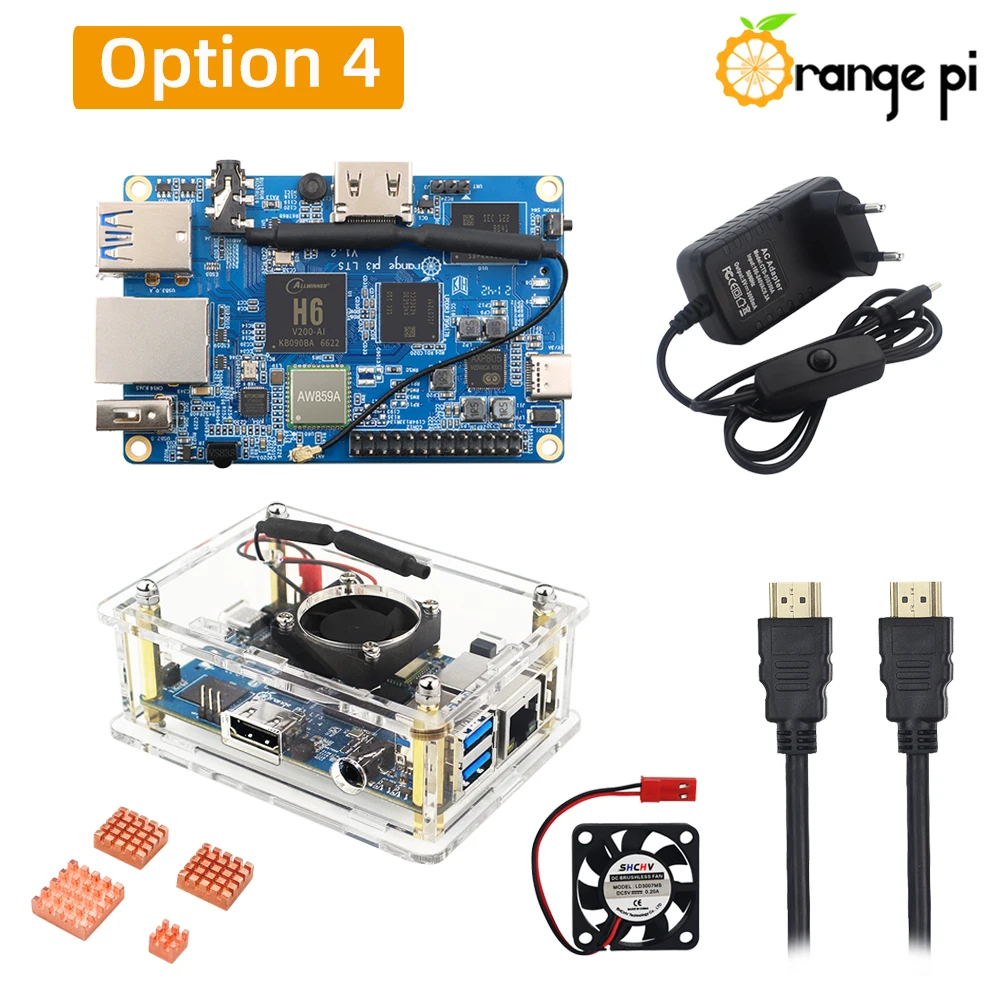 Orange Pi 3 LTS H6 64Bit 8GB EMMC 2G RAM WiFi BT 5.0 Optional Case Power Heatsink Fan HDMI-compatible Cable TF Card OPI 3LTS