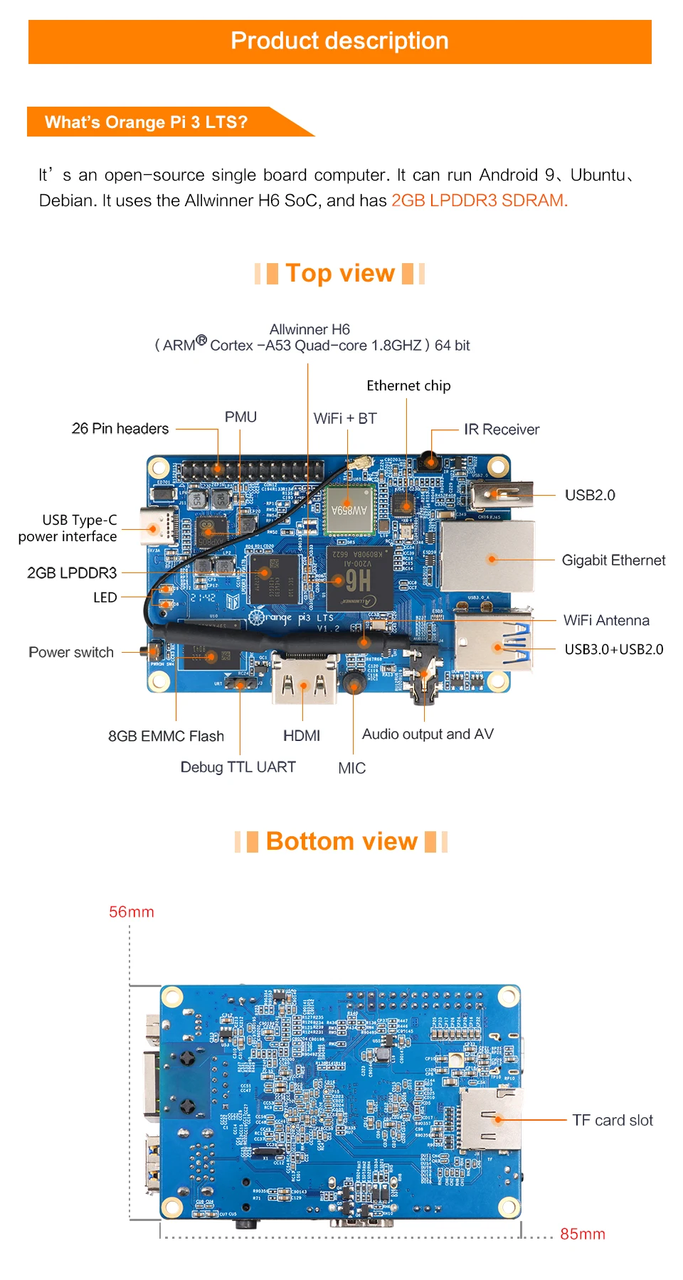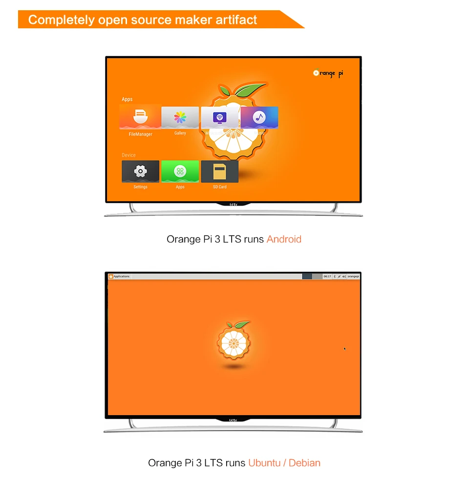 Orange Pi 3 LTS can run Android,Ubuntu and Debian OS.
