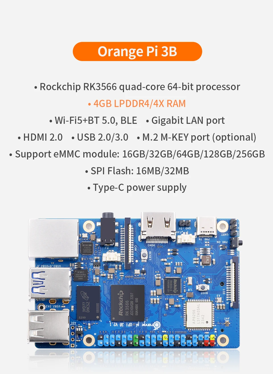 Comprar Orange Pi 3B Rockchip RK3566 64-bit 2/4/8 GB RAM opcional 256G EMMC carcasa ventilador disipador de calor fuente de alimentación tarjeta SD para OPI 3B