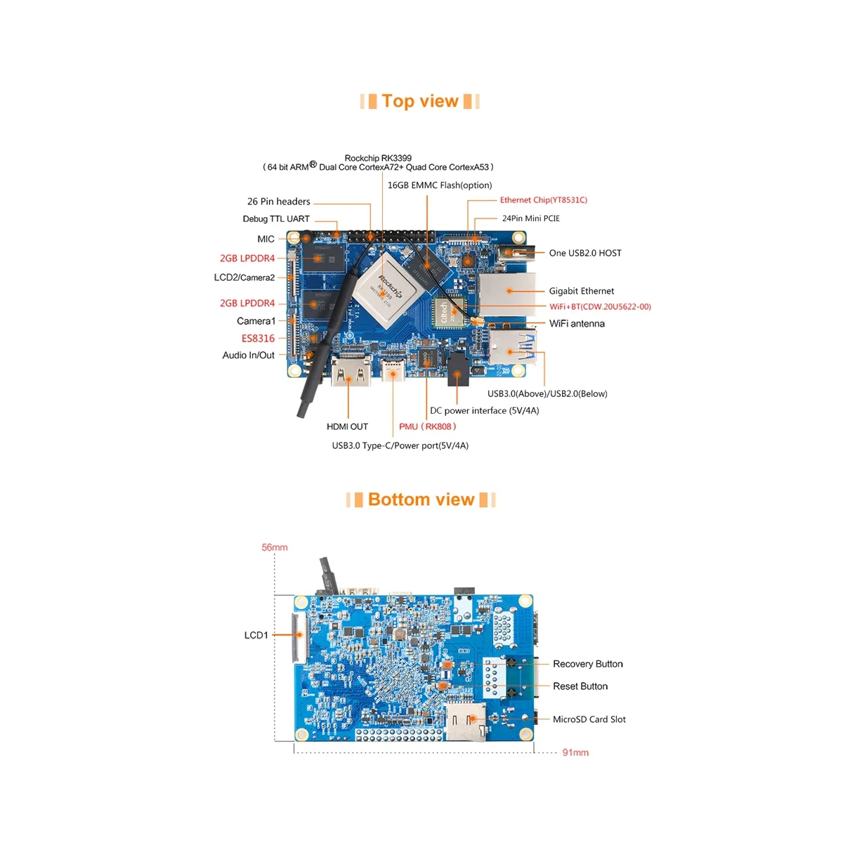 Comprar Para Orange Pi 4 4GB + carcasa de aluminio Rockchip RK3399 16GB EMMC Placa de desarrollo Gigabit Ethernet para Android/