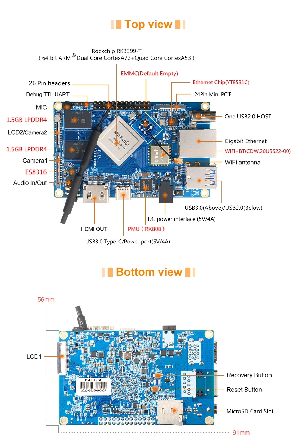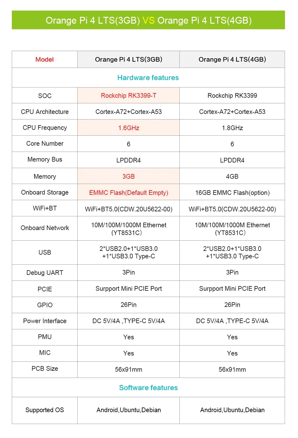 Orange Pi 4 LTS 3G + carcasa metálica (antena) + fuente de alimentación DC 5V4A, mini tableta de ordenador PC RK3399-T, ejecutar Android, Ubuntu, sistema operacional Debian