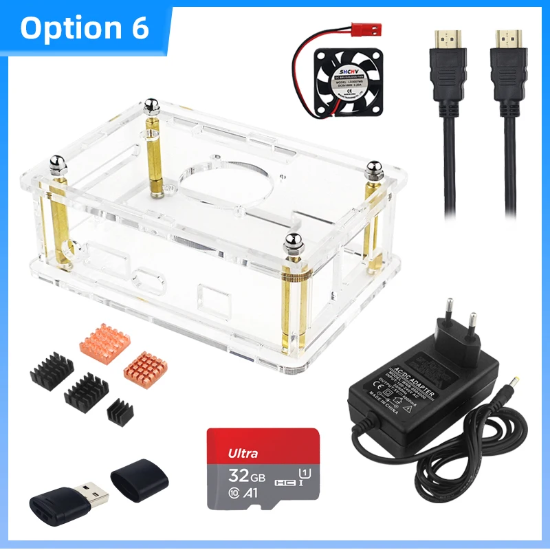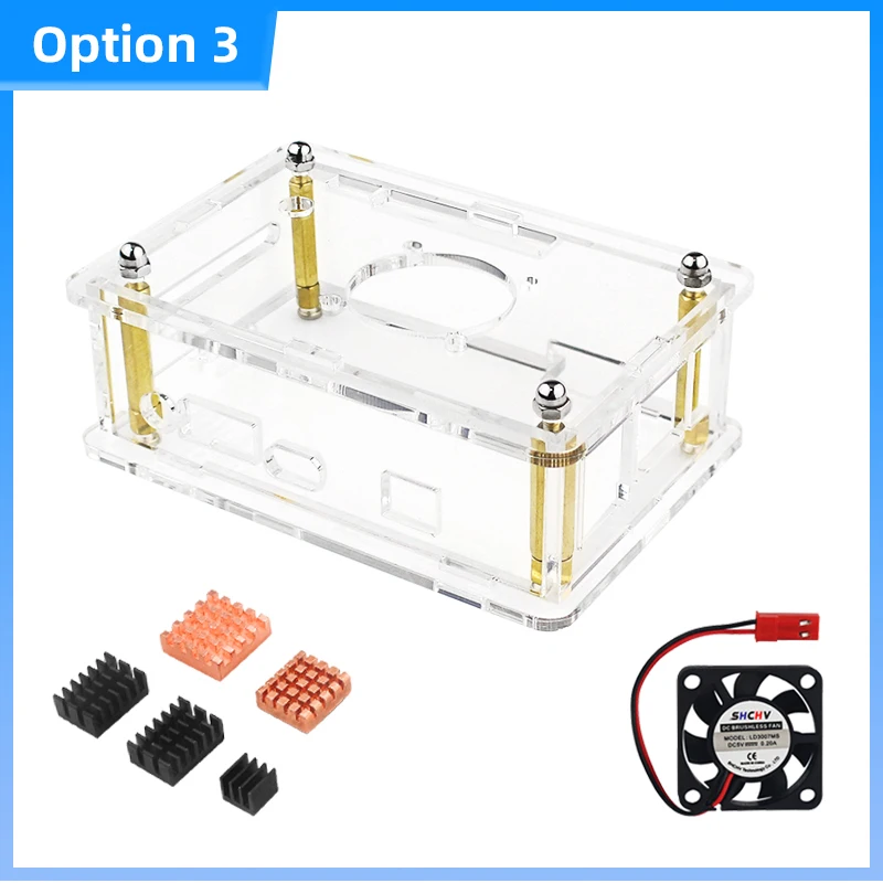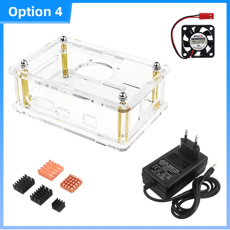 Orange Pi 4 LTS Caja acrílica Carcasa transparente Ventilador DE REFRIGERACIÓN OPCIONAL Disipador de calor DC 4,0 Fuente de alimentación Tarjeta MicroSD para OPI 4 LST