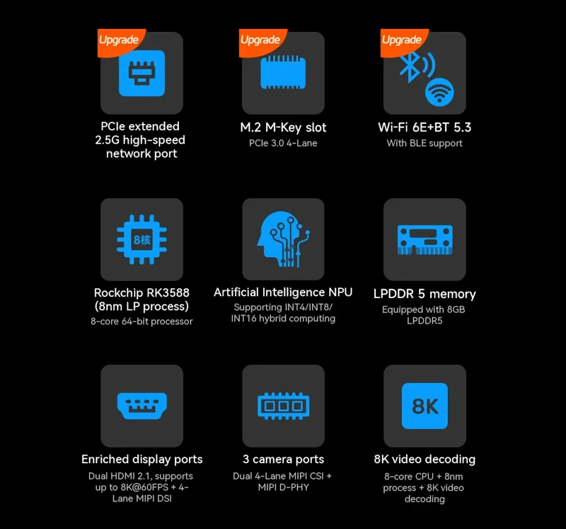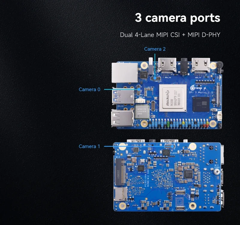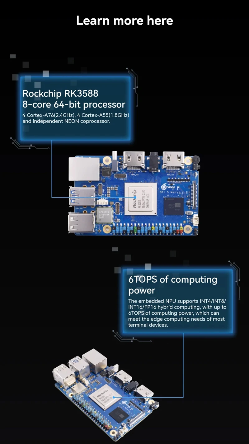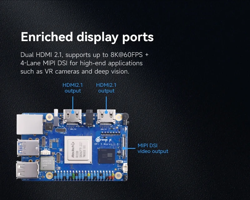 Orange Pi 5 Max 16GB 8GB RAM LPDDR5 RK3588 Chip 8K Video M.2 PCIE 2.5G LAN WiFi6+BT5 EMMC Fuente de alimentación opcional