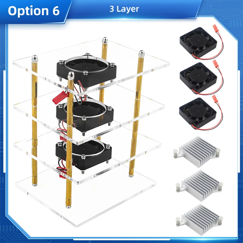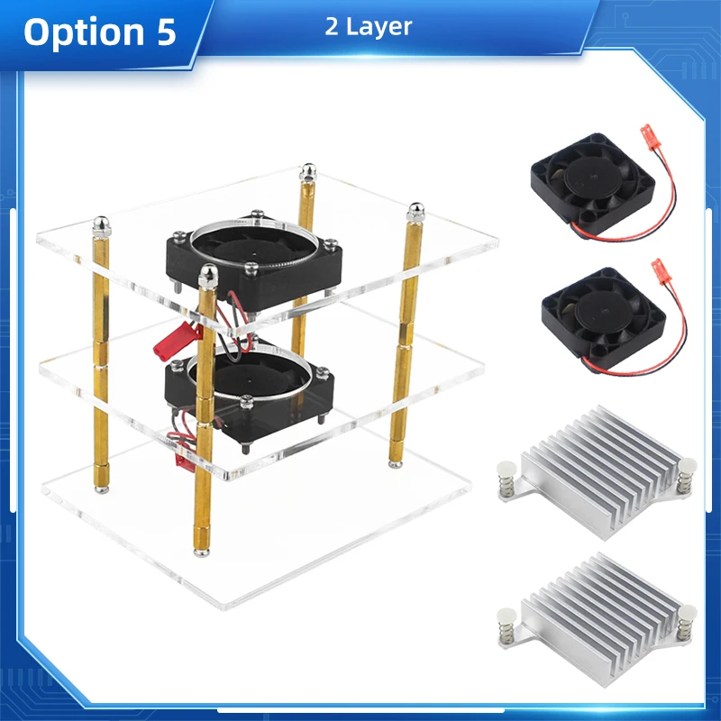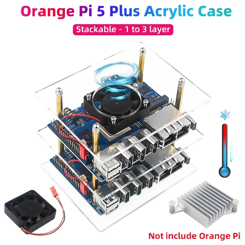 Comprar Orange Pi 5 Plus carcasa acrílica tranparente, placa apilable de 1 a 3 capas con ventilador de refrigeración, disipador de calor opcional para OPI 5 Plus