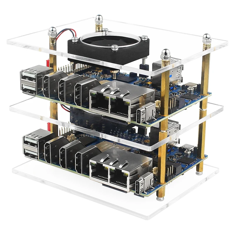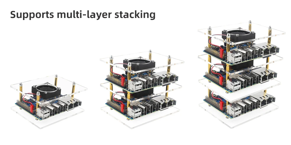 Orange Pi 5 Plus Caja acrílica Carcasa transparente Placa apilable de 1 a 3 capas con ventilador de refrigeración Disipador de calor opcional para OPI 5 Plus