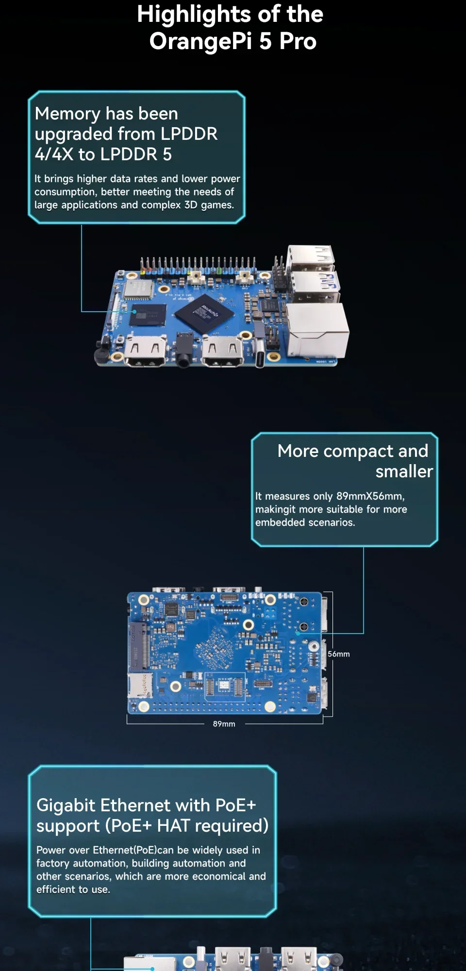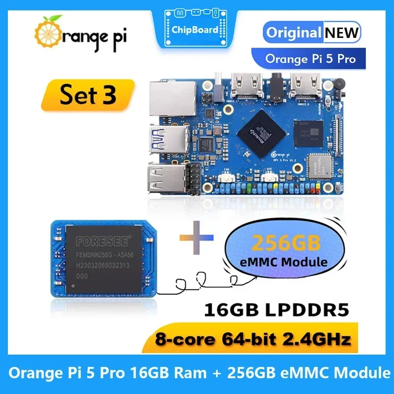 Comprar Orange Pi 5 Pro 16GB Ram + 256 GB módulo eMMC placa única RK3588S LPDDR5 Wifi5.0-BT5 M2.0 Placa de desarrollo de puerto