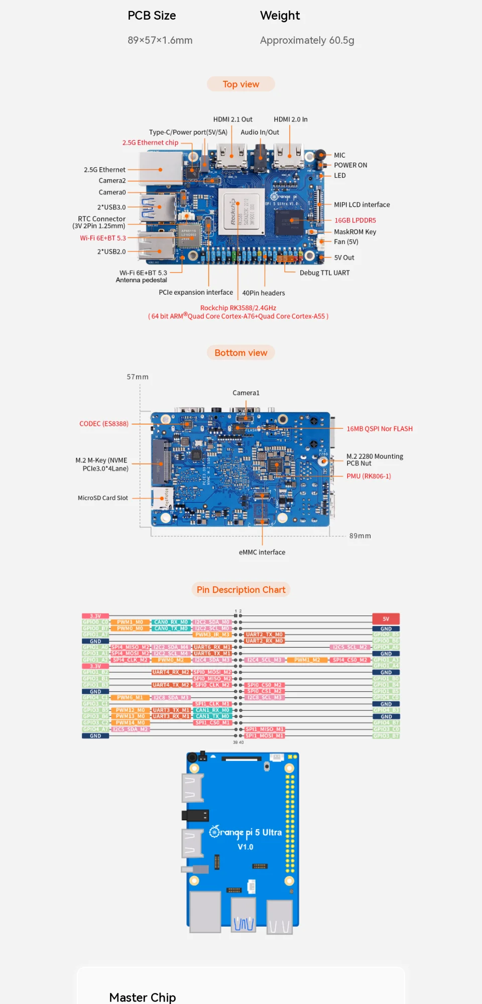 Orange Pi 5 Ultra 8G 16G Ram RK3588 DDR5 computadora de placa única WiFi + BT M2 SSD 6TOPS NPU OrangePi5 Ultra Mini PC Run