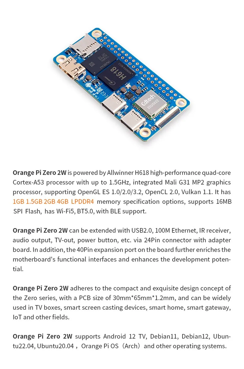 Admite la instalación de la placa de expansión Orange Pi Zero 2 W