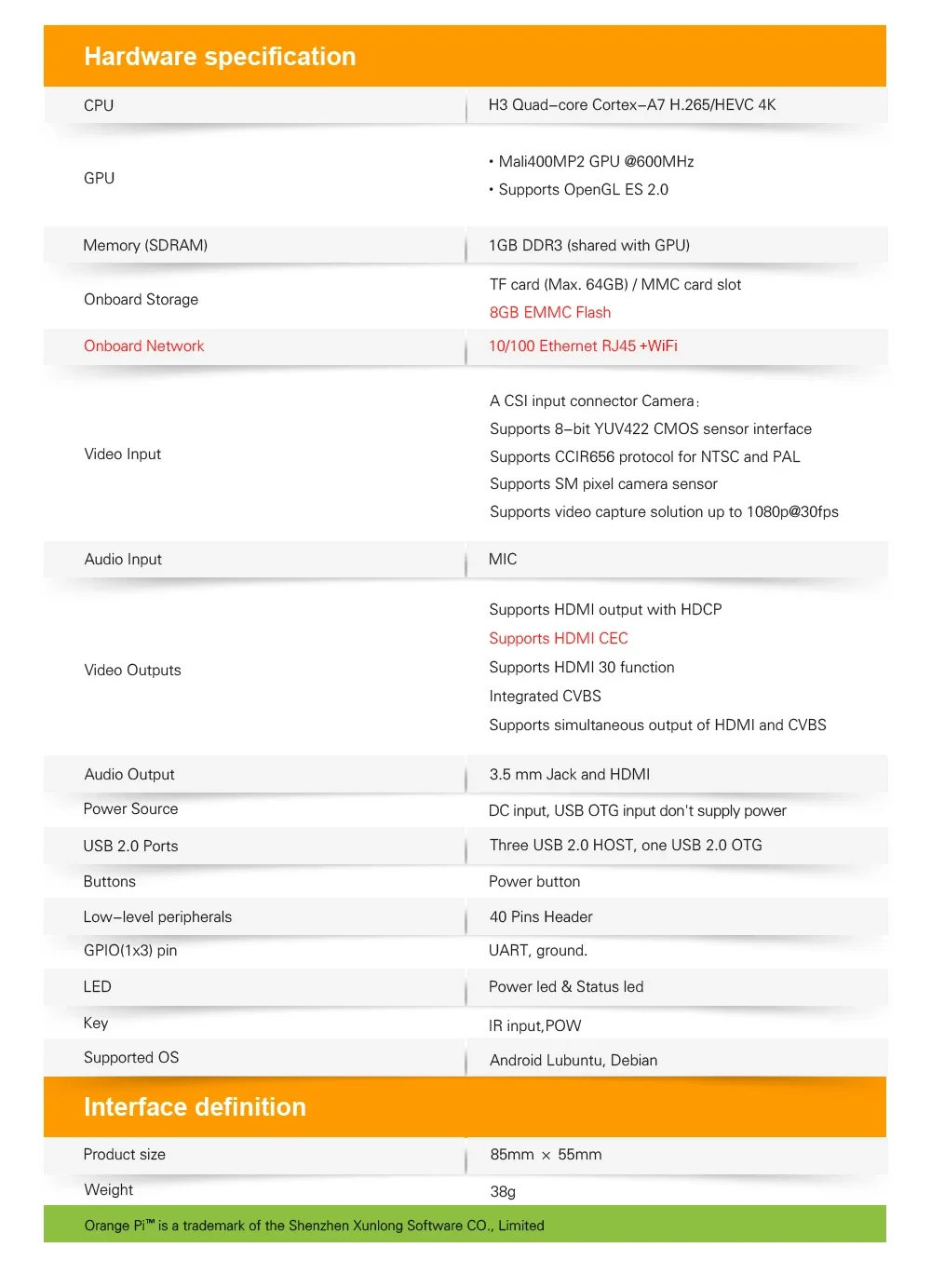 Descarga de datos del sitio web oficial: http://www.orangepi.org/downloadresources/