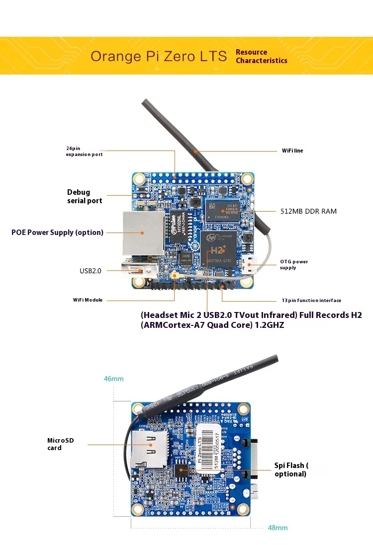 Orange Pi Zero LTS Maker Open Source Allwinner H2 H3 SBC Versátil