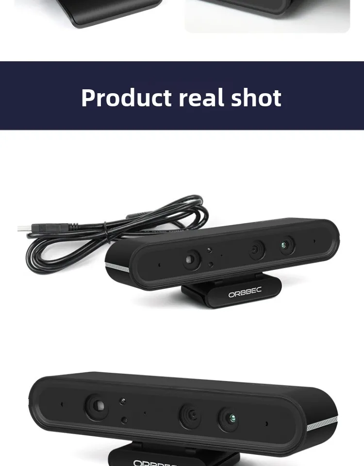 Otros: - Sistema operativo compatible: para Android/Linux/Windows7/Windows10 - Entorno de trabajo: interior - Interfaz de datos: USB2.0 - Tamaño del producto: 164,85 x 48,25 x 40 mm - Micrófono: estéreo de doble canal - Consumo de energía: 2,5W - Temperatura de trabajo: 10℃ ~ 40℃ - Seguridad: Láser clase 1 - Longitud del cable USB: 1,5 m