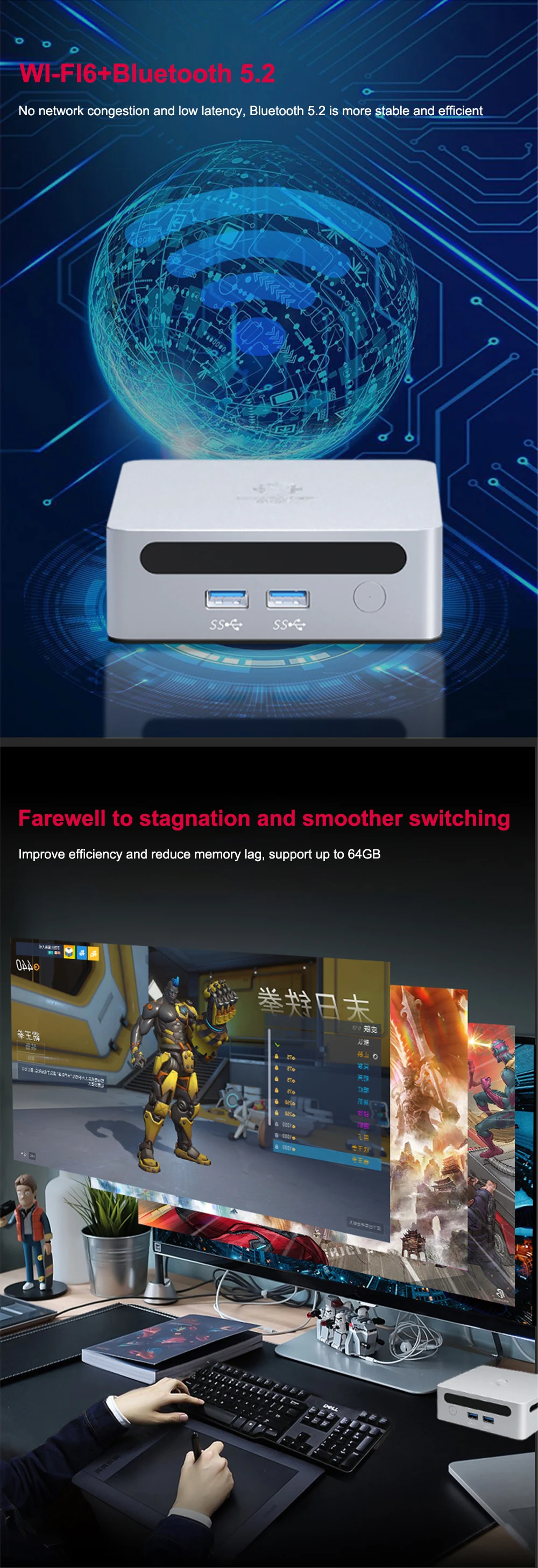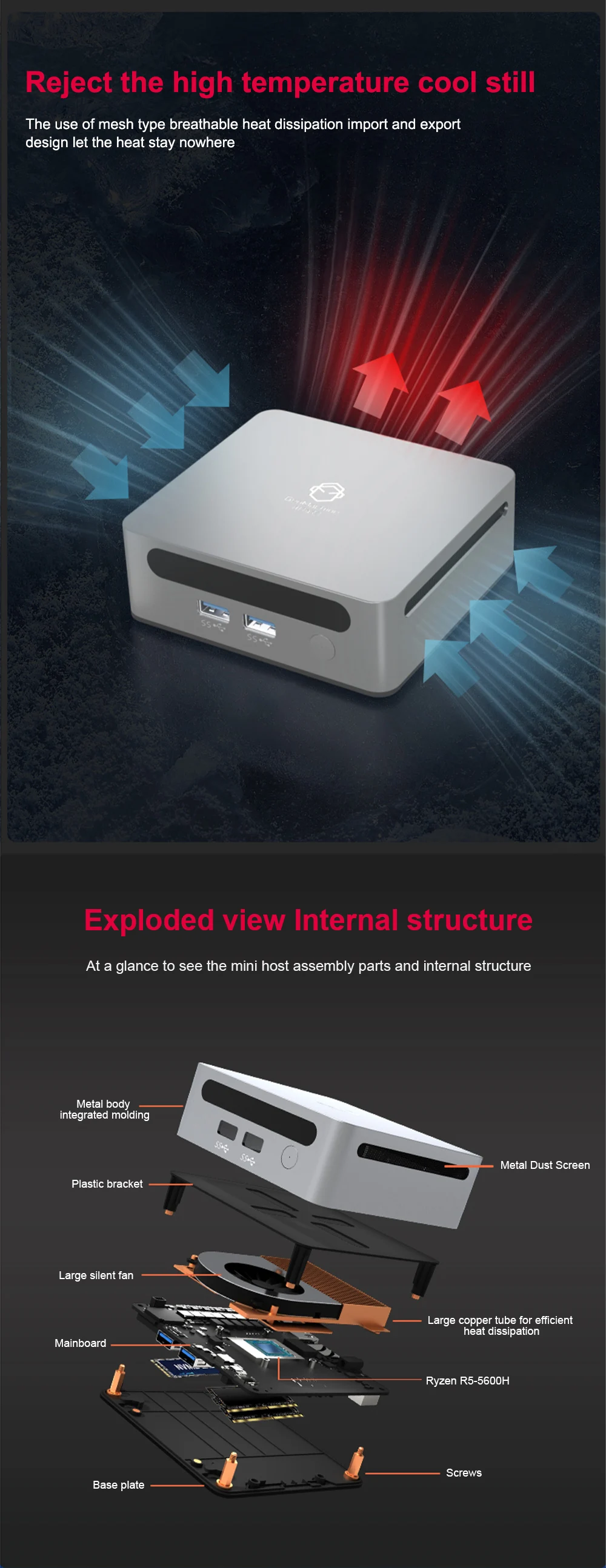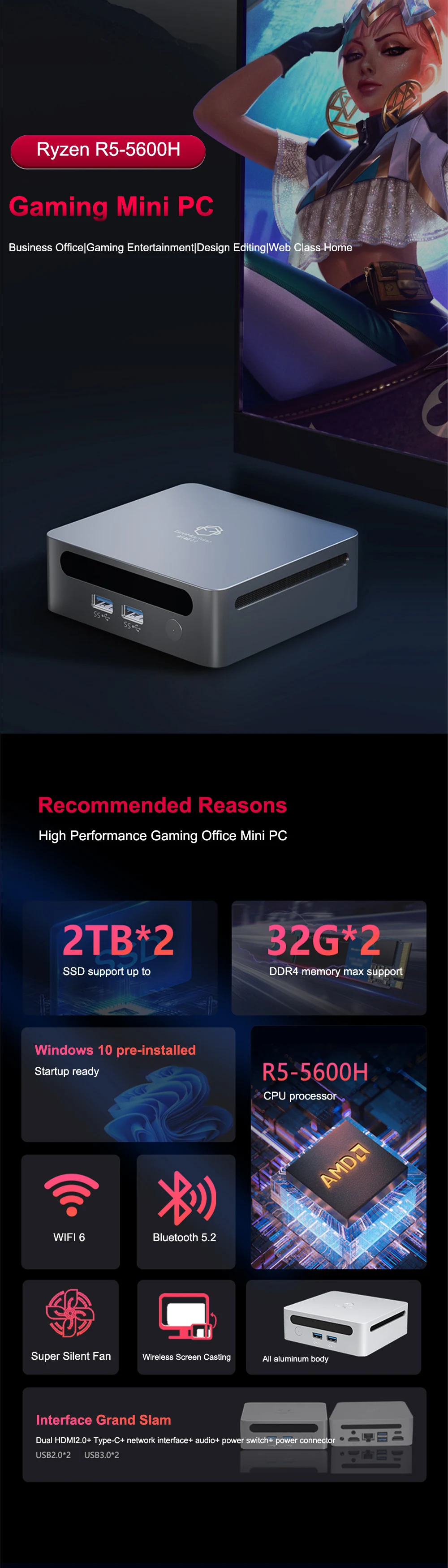 AMD Ryzen 5 5600H Mini PC Windows 10/11 3,3 GHz Hasta 4,2 GHz 2 * DDR4 Max Soporte 64GB RAM Gaming WIFI6 Computadora