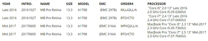 PARA 2016 2017 MODELOS DE MACBOOK PRO13 A1708