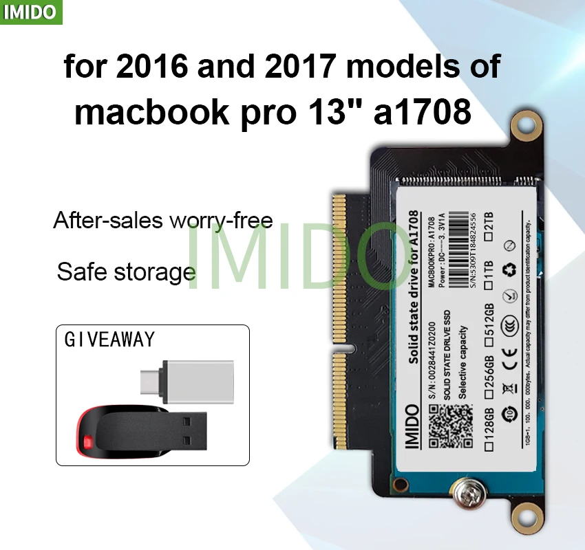 Comprar Ordenador portátil A1708, SSD, 128GB, 256GB, para Macbook Pro, Retina de 13,3 pulgadas, año 2016, año 2017, disco de estado sólido PCI-E, EMC 1708, EMC 3164, nuevo