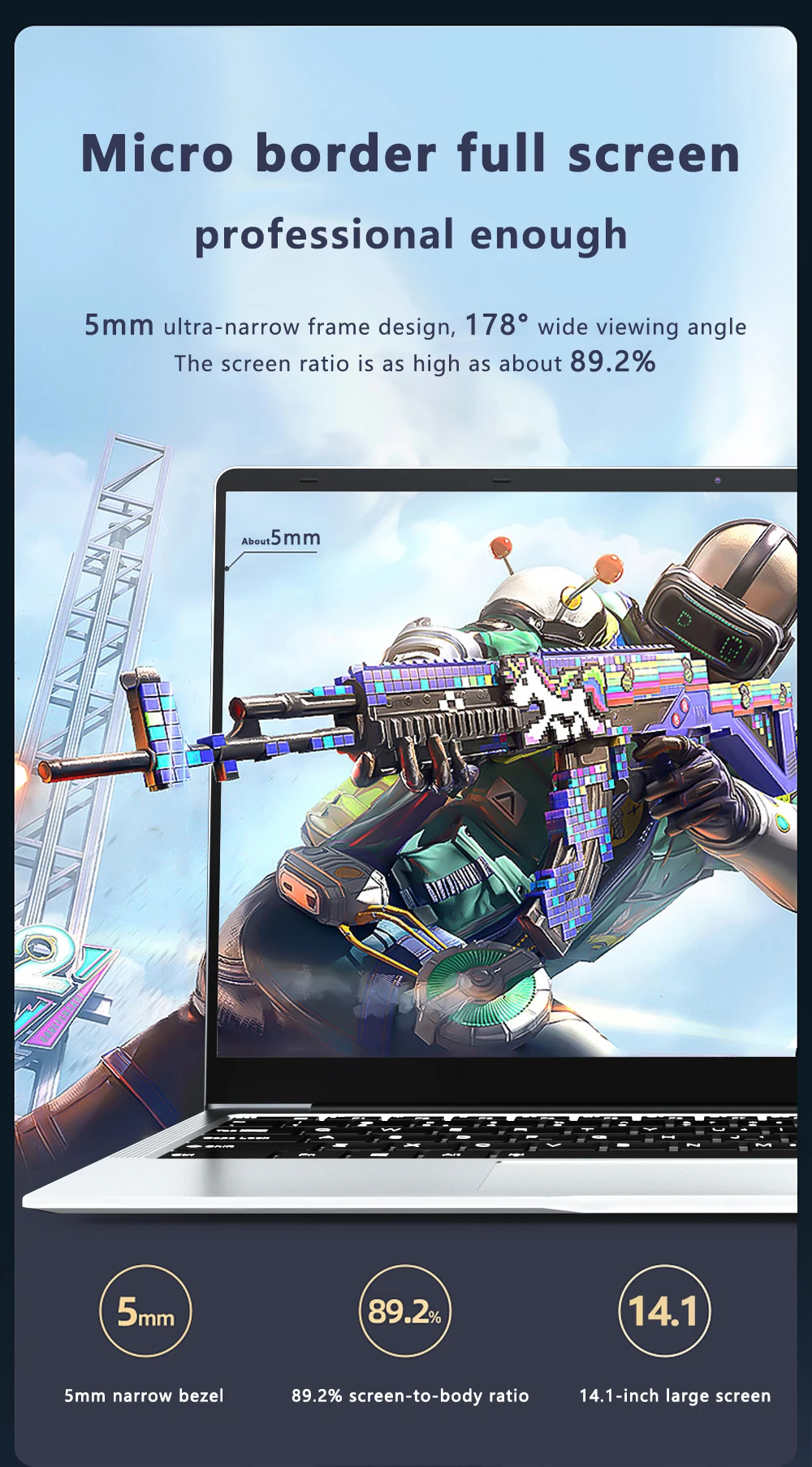 4. Pantalla IPS full HD de 14 pulgadas, 100% sRGB, Resolución 1920*1080