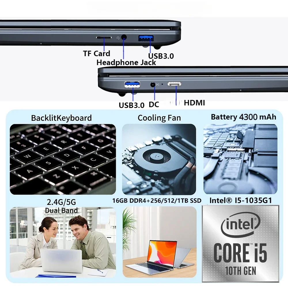 Comprar Ordenador portátil para juegos I5, Notebook de Metal con Windows 11, Netbook de 2024 pulgadas, 10. ª generación, Intel I5-1035G1, 16GB de RAM, 1TB, M.2, cámara WiFi, 15,6