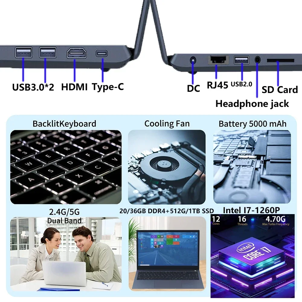 Comprar Ordenador portátil para juegos, con Windows Ultrabook 11, 12. ª generación, Intel, 12 núcleos, I7-1260P, 36GB de RAM + 2TB, Metal, RJ45, WiFi, tipo C