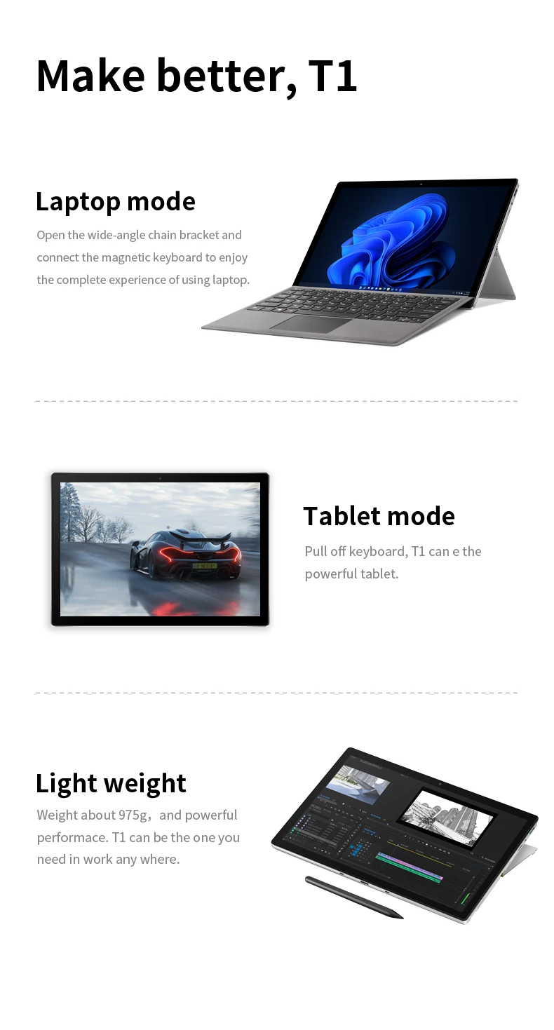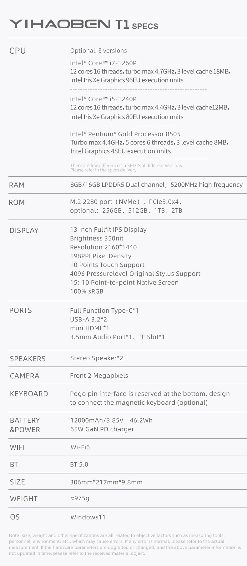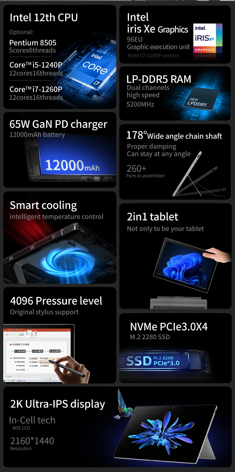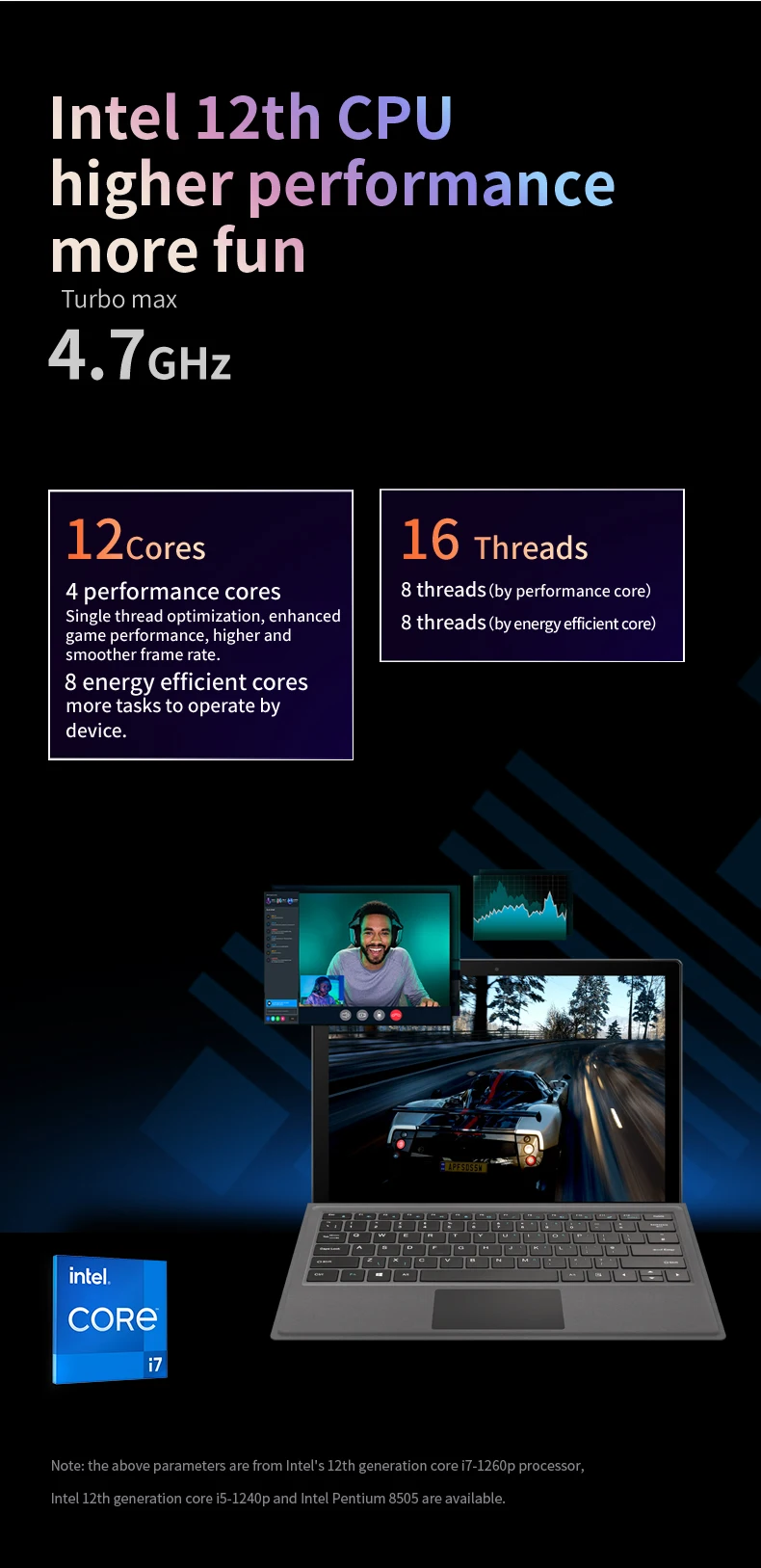 Comprar Ordenador portátil T1 IPS con CPU Intel i7 1260P i5 1240P 16GB LPDDR5 hasta 2TB 4096 Pen Smart Cooling win11 2 en 1