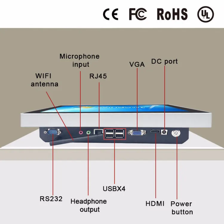Comprar Ordenador todo en uno Intel C1037K de 12 pulgadas, cinco cables táctiles, panel ultrafino de alta temperatura con WIFI
